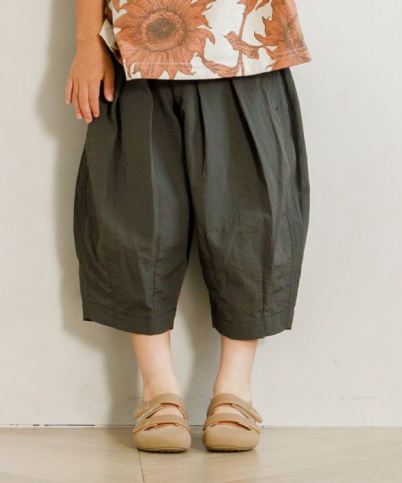 膝がしっかり隠れる丈のゆったりしたパンツ。