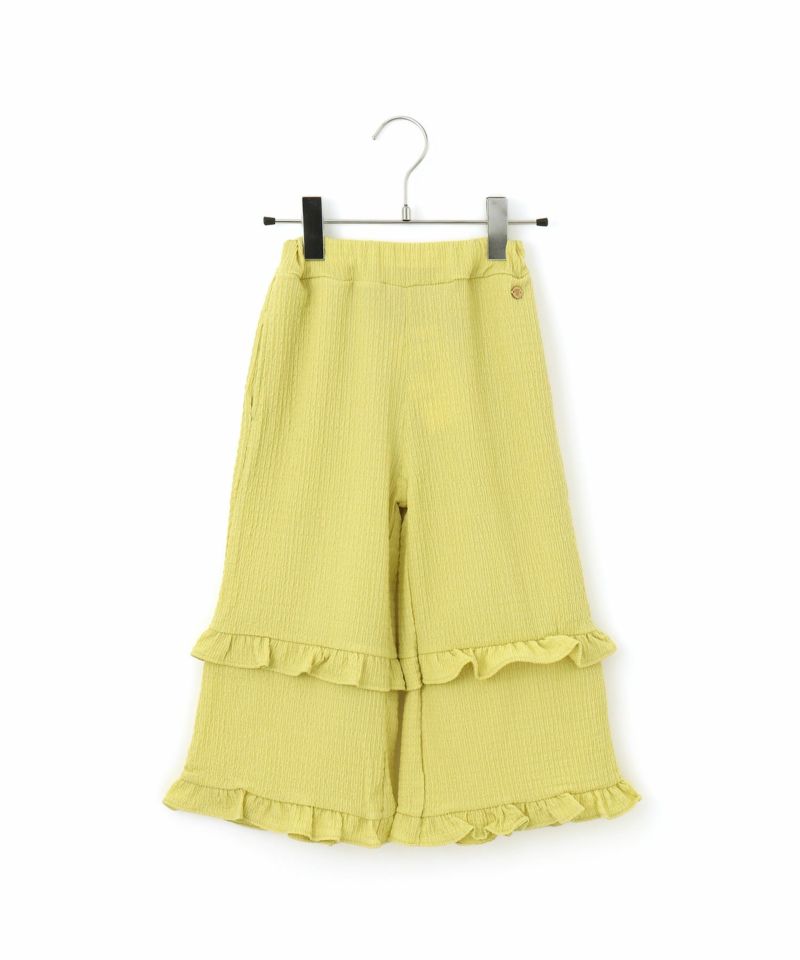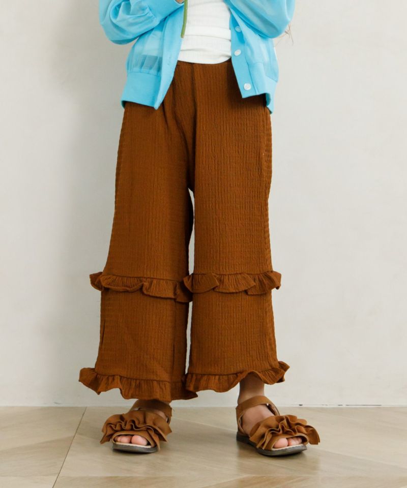 トレンドのぽこぽこした素材のパンツでスタイルアップを叶えてくれるバツグンのシルエット!