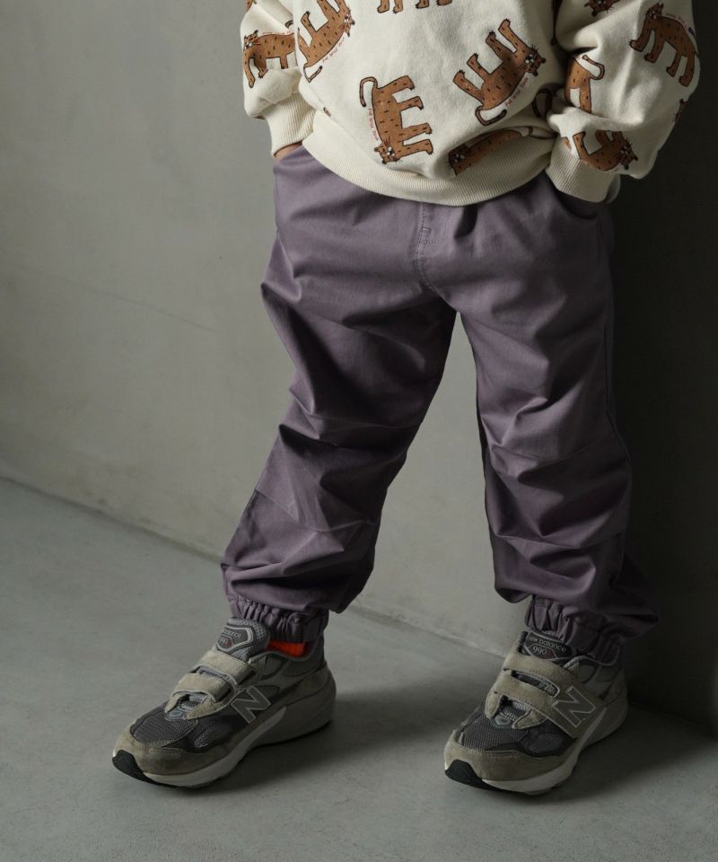 立体的なひざ部分の縫製や、ジョガータイプの裾口は、実はお子どもさんたちにぴったりのデザイン!
