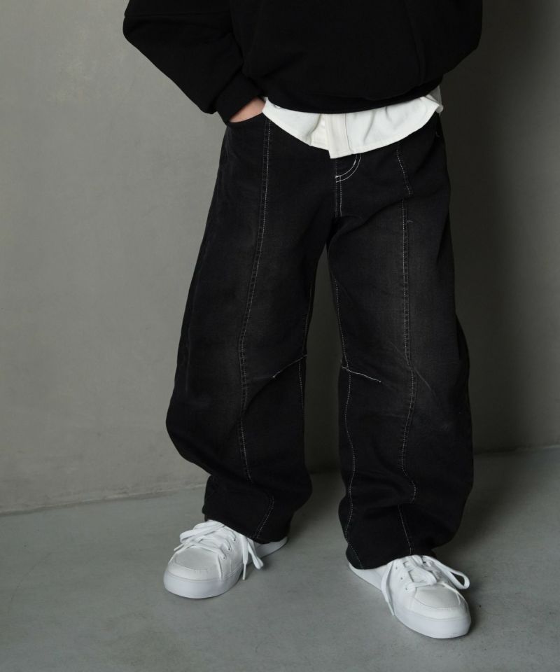 トレンド感のあるカーブシルエットがポイントのデニムパンツ。