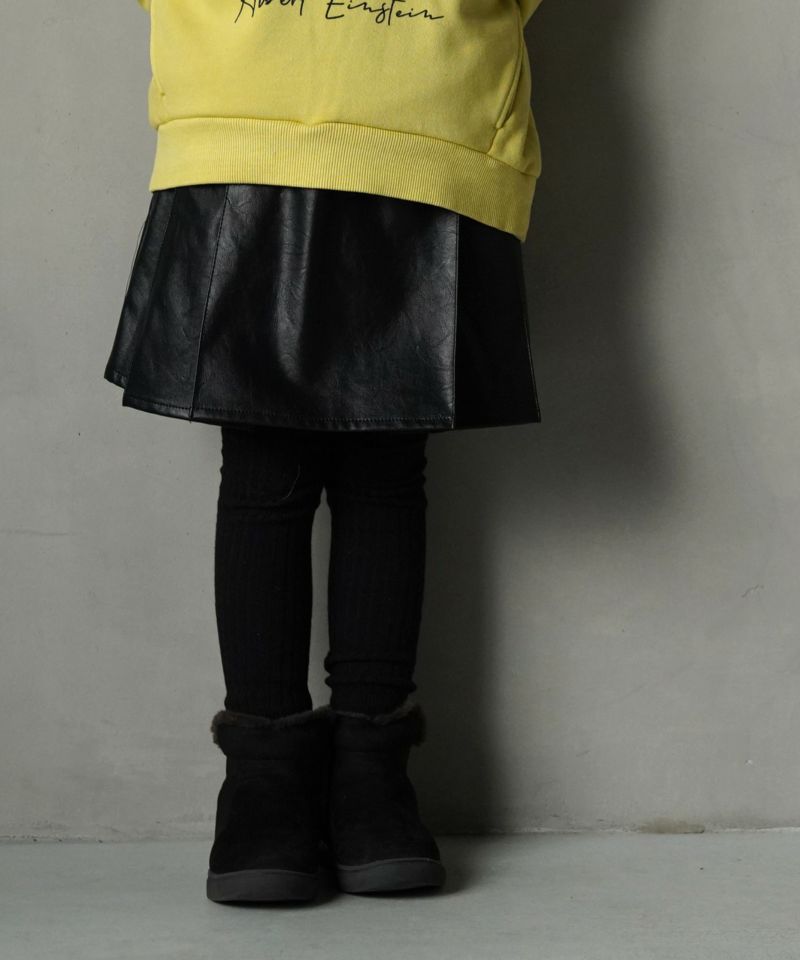 【セール】チェックとフェイクレザーのプリーツスカート■80~140cm