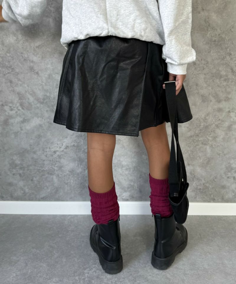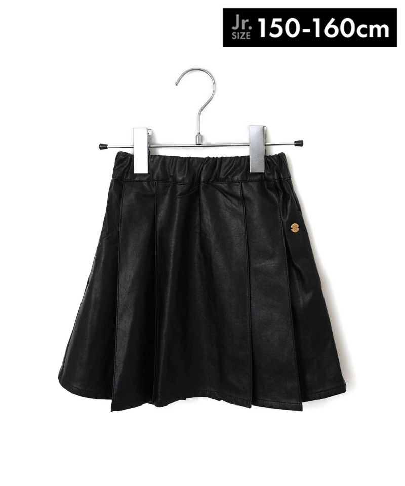 【セール】チェックとフェイクレザーのプリーツスカート■150.160cm