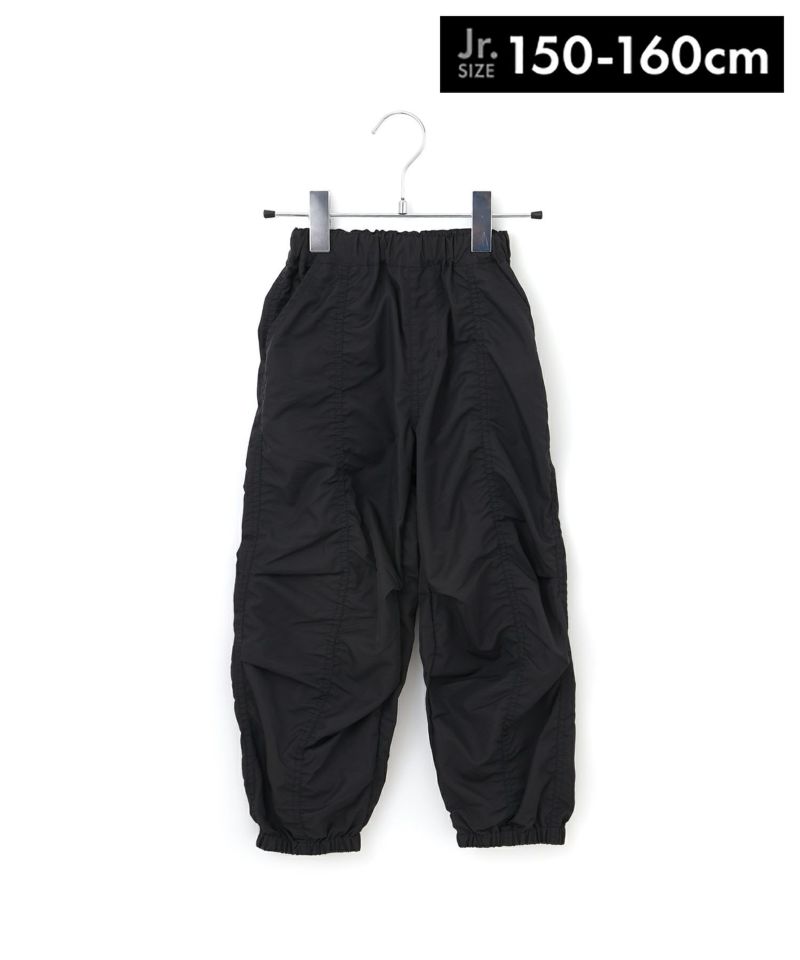 ナイロン素材をくしゅくしゅにシャーリングさせたジョガーパンツ。