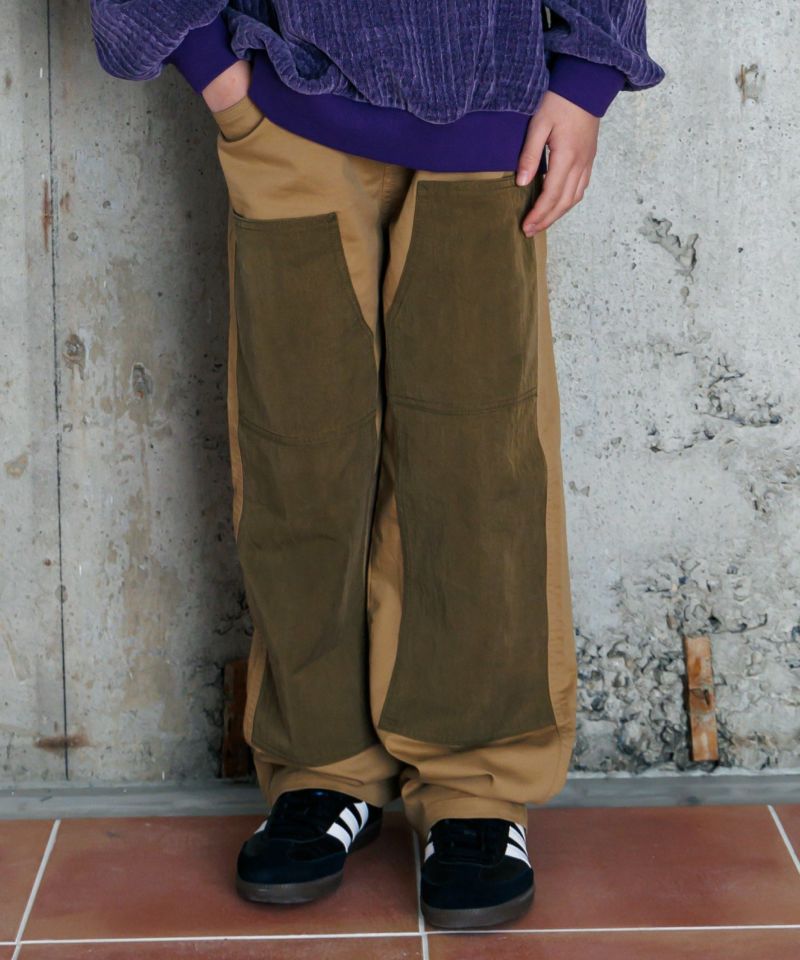 ストレッチツイルのワークパンツをダブルニーのデザインに!