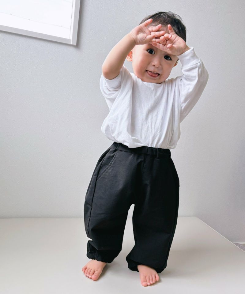 裾はゴムの入ったジョガーデザイン。すっきりとした足もとです。