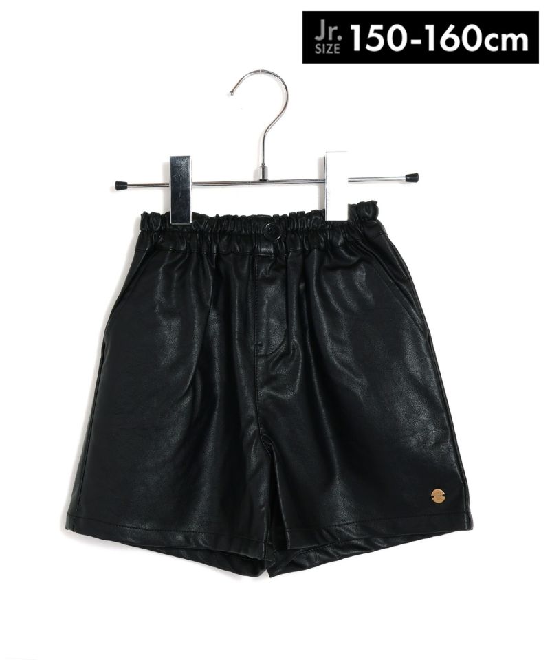 フェイクレザーとヘリンボーンのショートパンツ■150.160cm