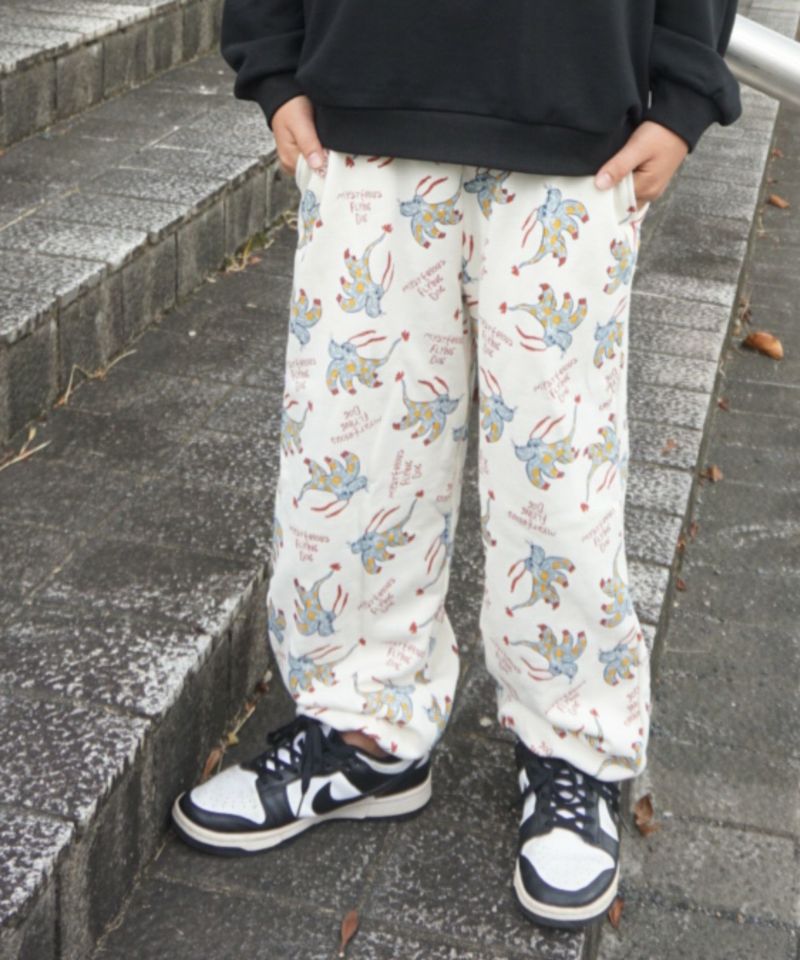 空飛ぶ犬総柄スウェットパンツ■150.160cm