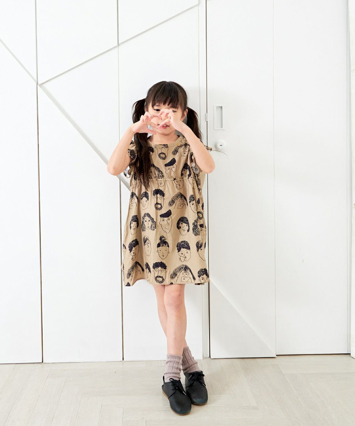 【セール】いろんな顔総柄ワンピース■90~140cm