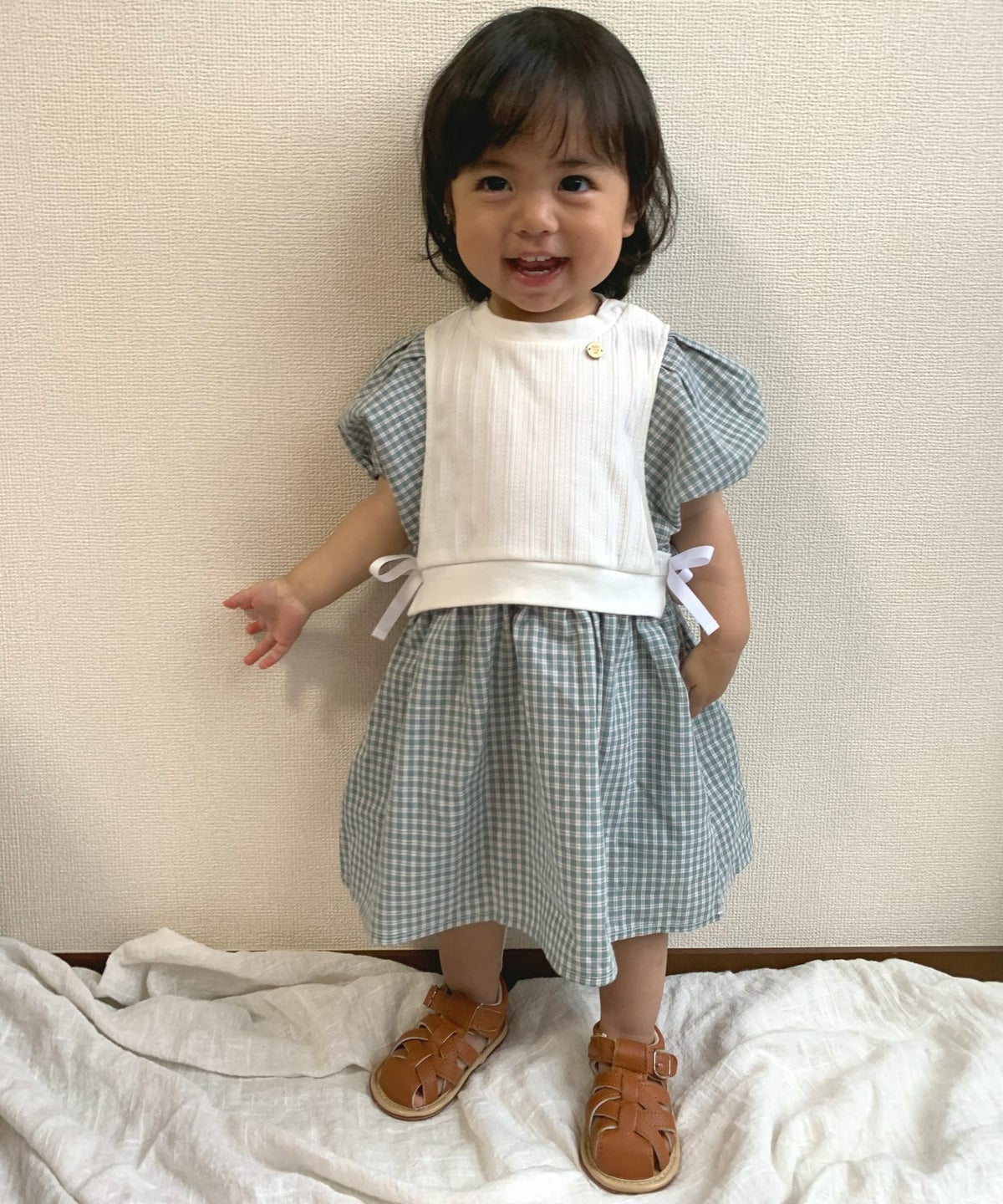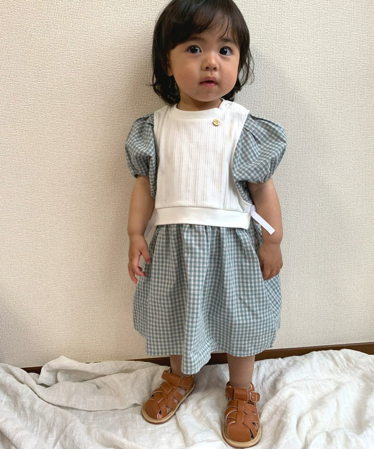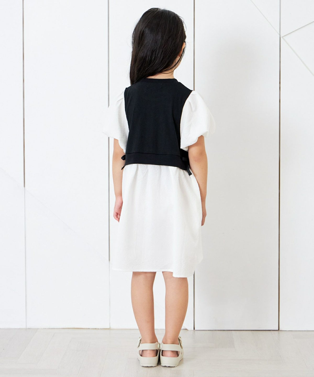【セール】レイヤード風パフスリーブワンピース■90~140cm