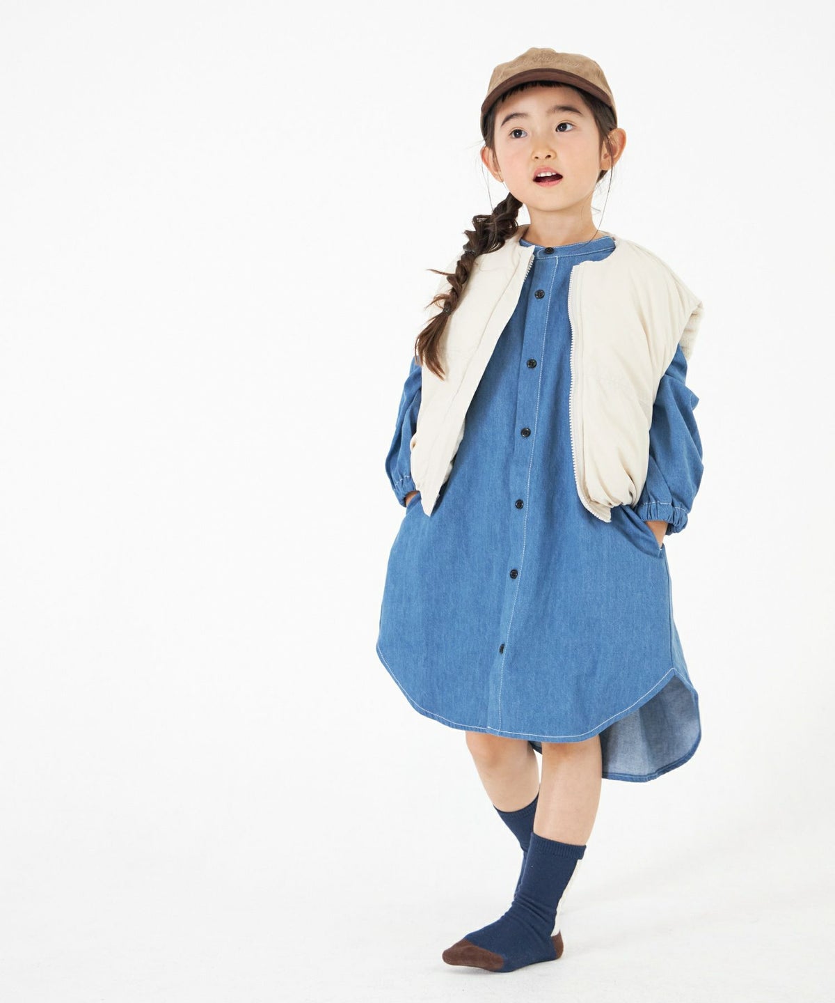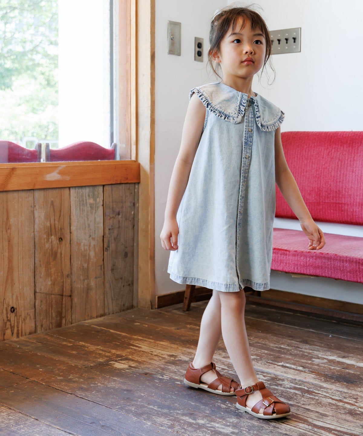 【セール】ビッグカラーデニムワンピース■80~140cm