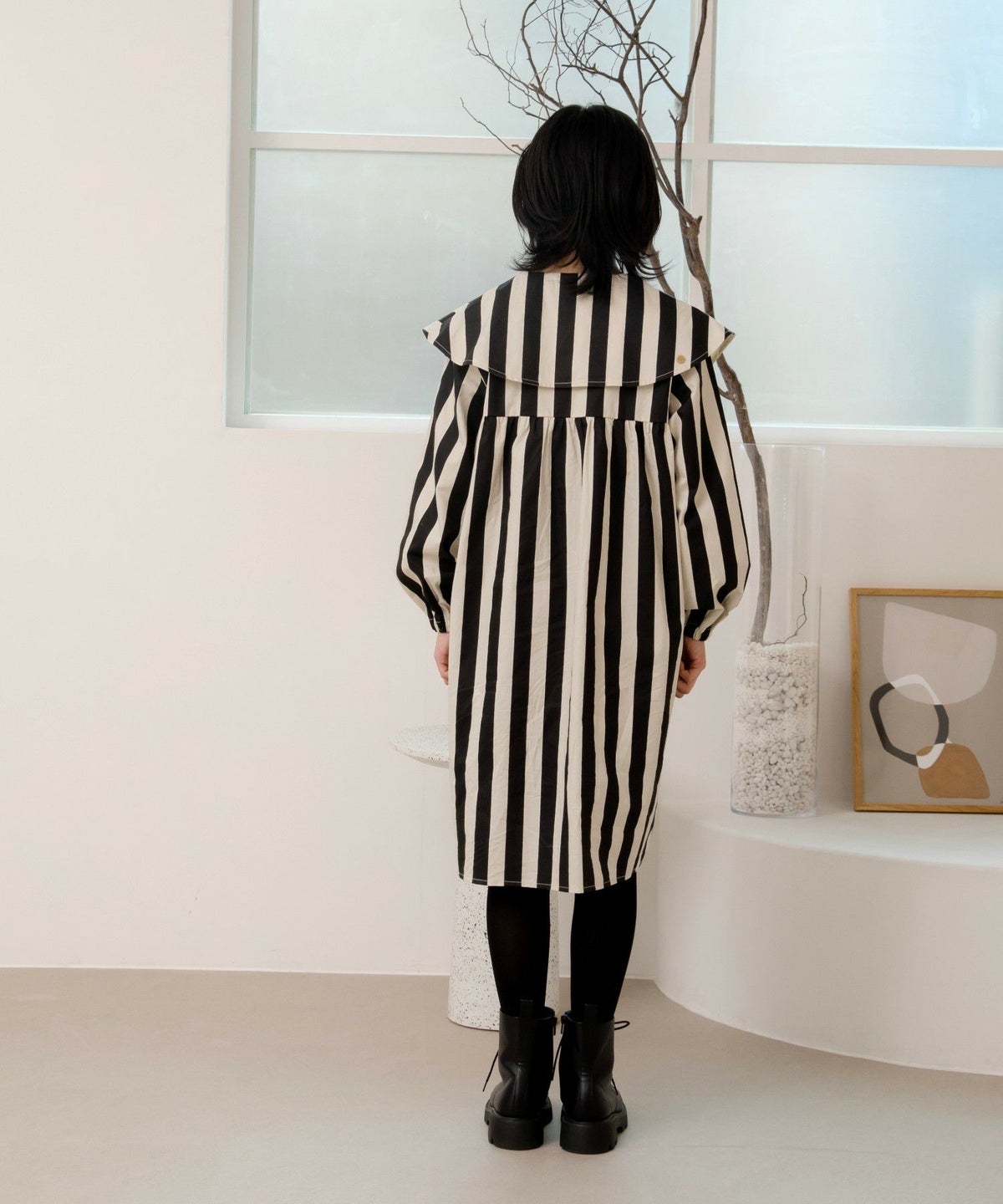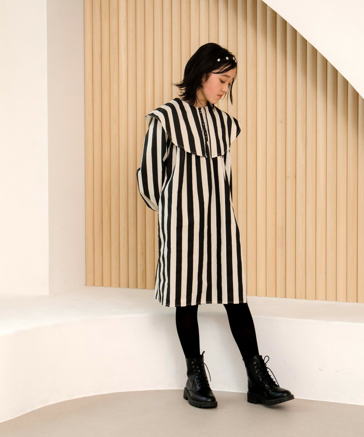 ビッグカラーストライプワンピース■150.160cm
