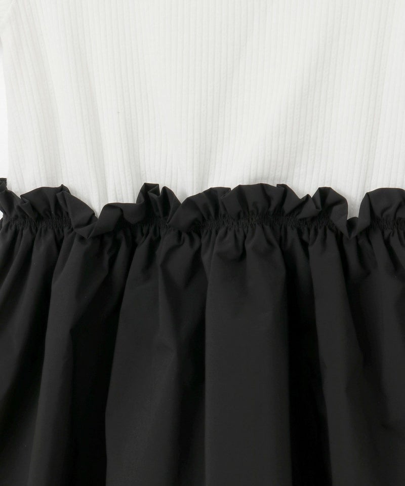 リブTシャツとナイロンのスカートがドッキングされた、大人っぽいシルエットのワンピース。