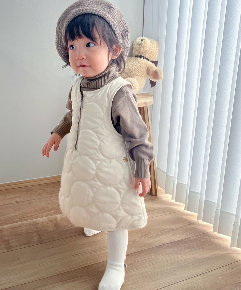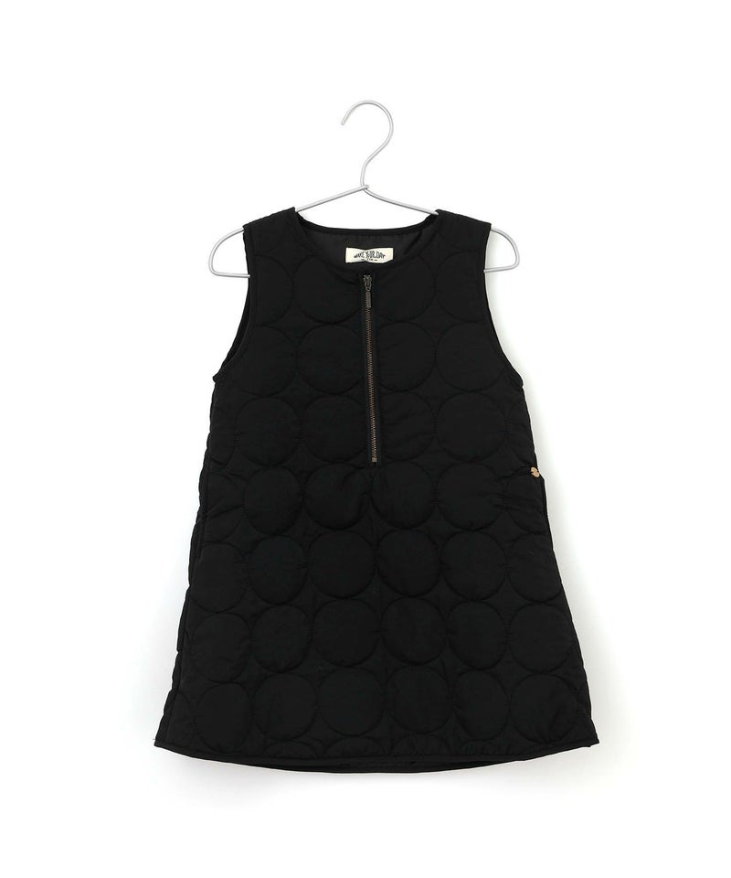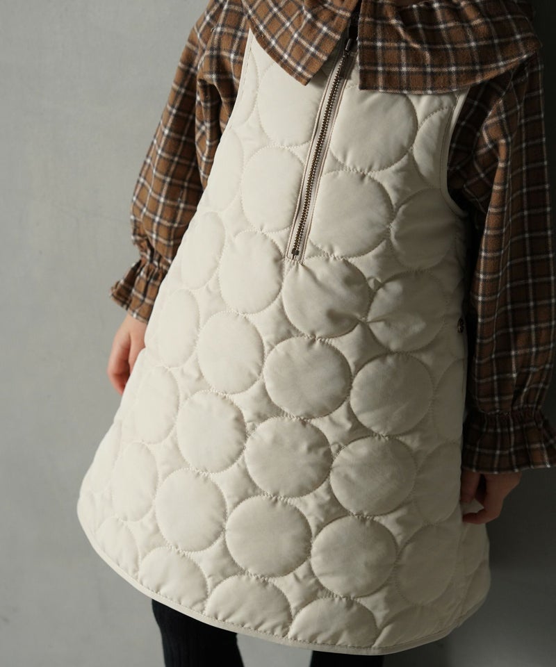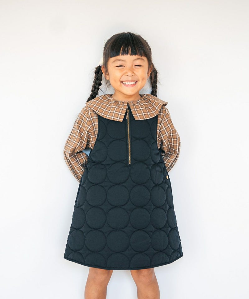 大き目のドットが目を引くキルティング素材ジャンパースカート。