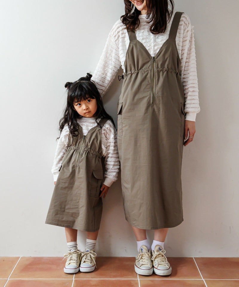 キッズサイズはフレアなシルエット、ママサイズは大人が着やすいタイトなシルエットで、おそろいで着用するとかわいらしさがグンと上がるデザインです。