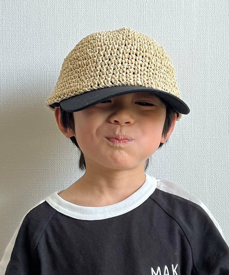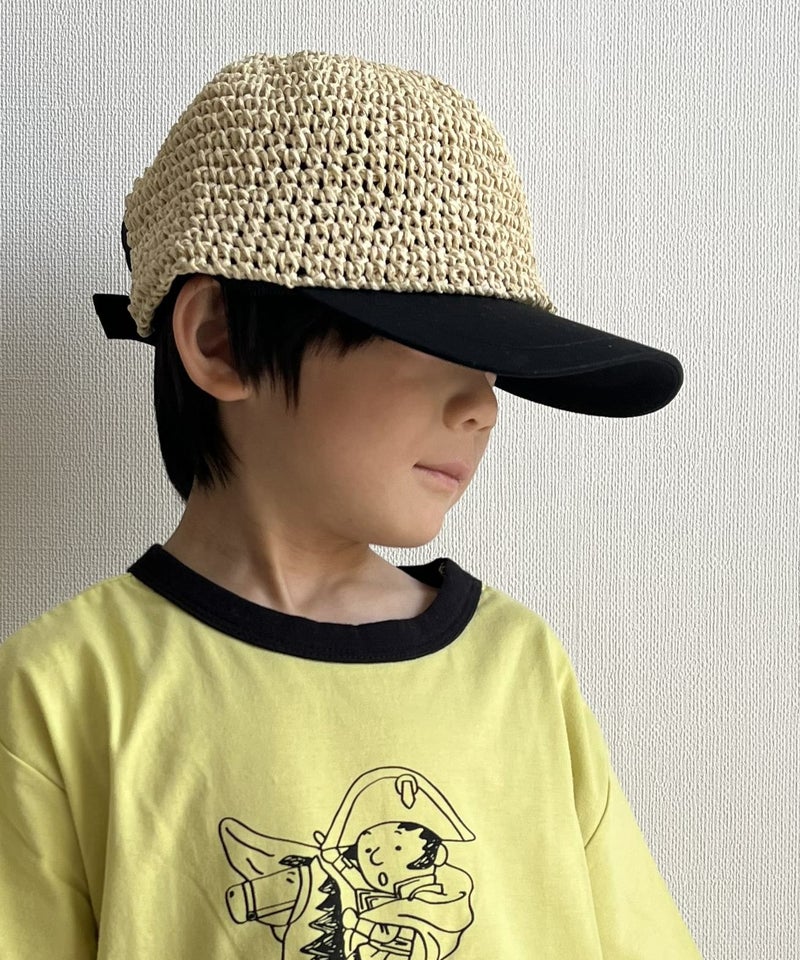 本体)指定外繊維(ペーパーヤーン)100% つば・天ボタン・後ろベルト・後ろパイピング部分)綿100%
