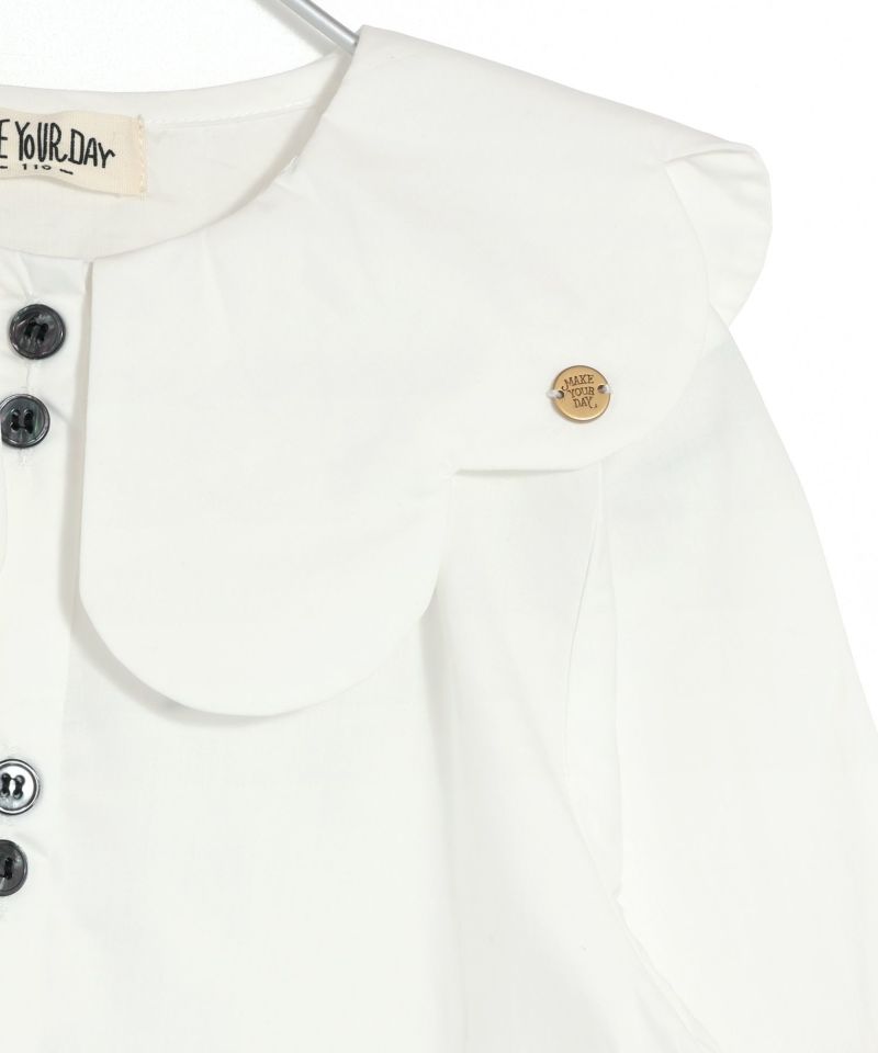 おっきな衿がアクセントになったトレンドのデコラティブなデザインのブラウス。
