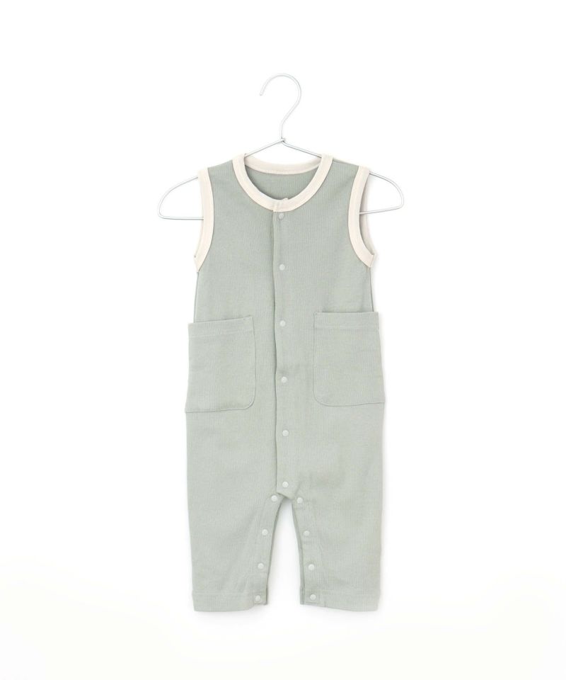 【セール】無地リブノースリーブロンパス