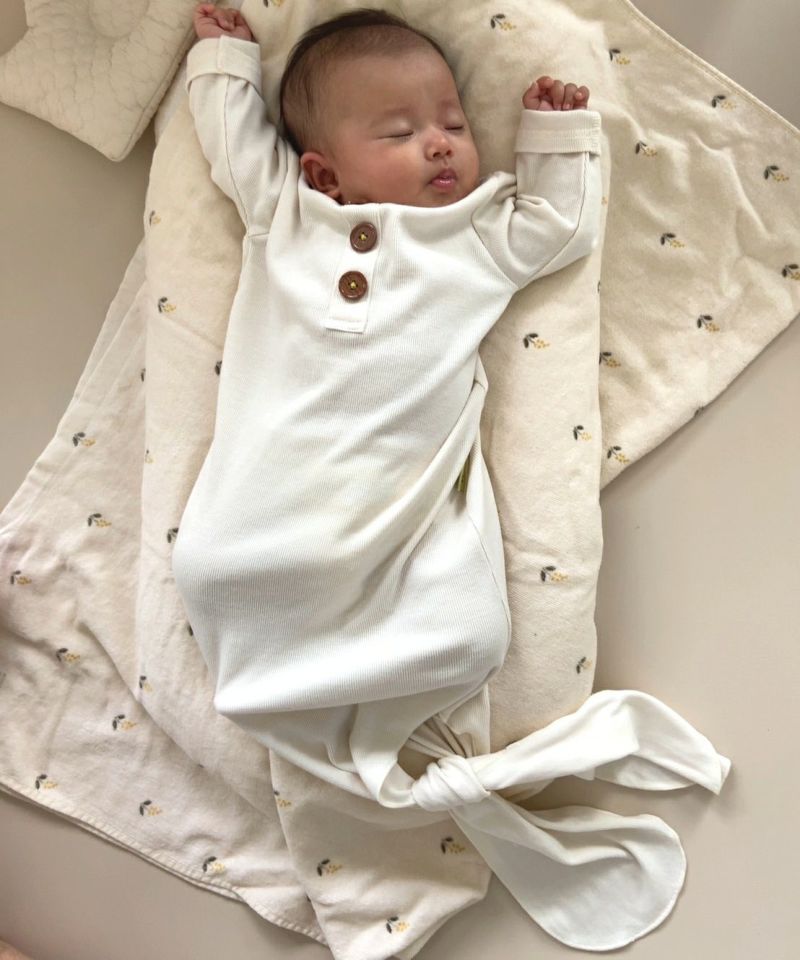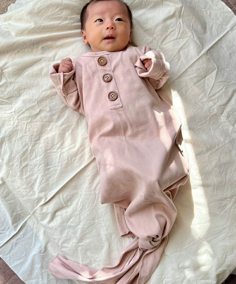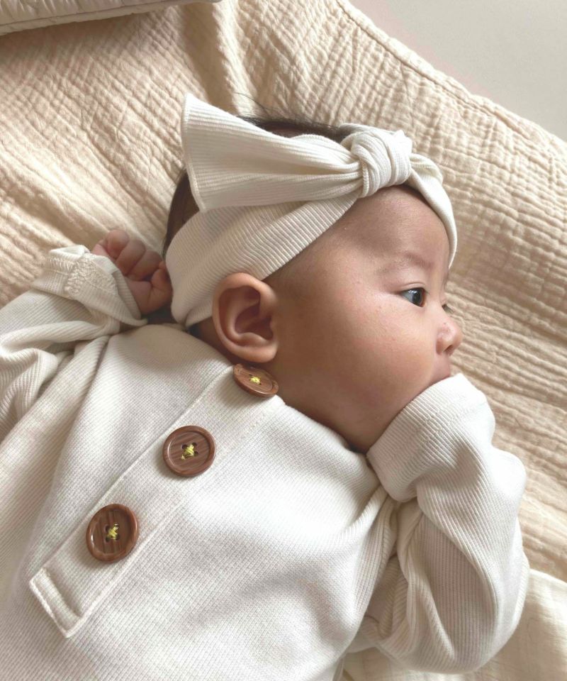 足部分を軽く結ぶ仕様になっているので、おむつ替えもラクチン♪