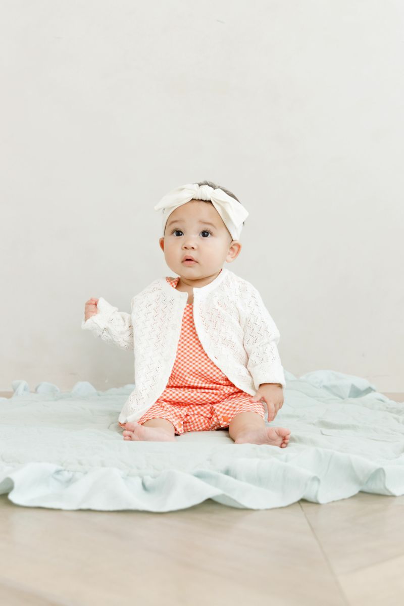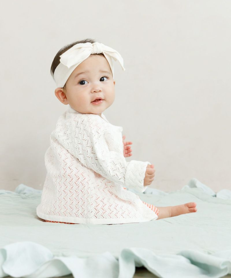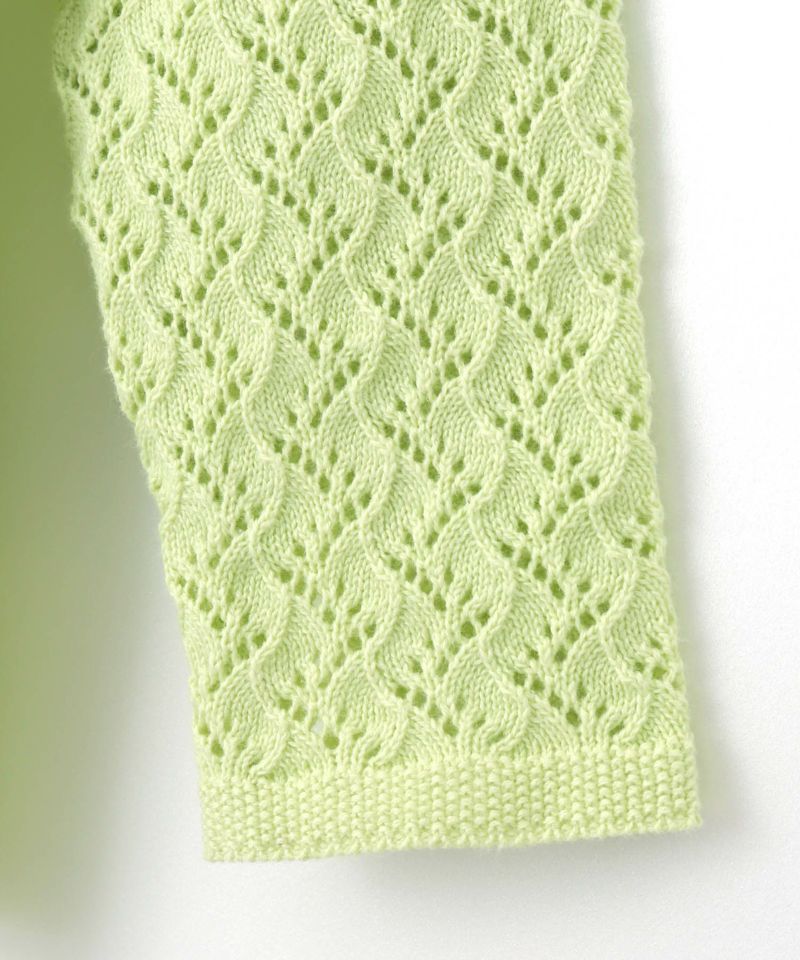 ここぞという日のおしゃれにぴったりの透かし編みで涼しげなベビーカーディガン。