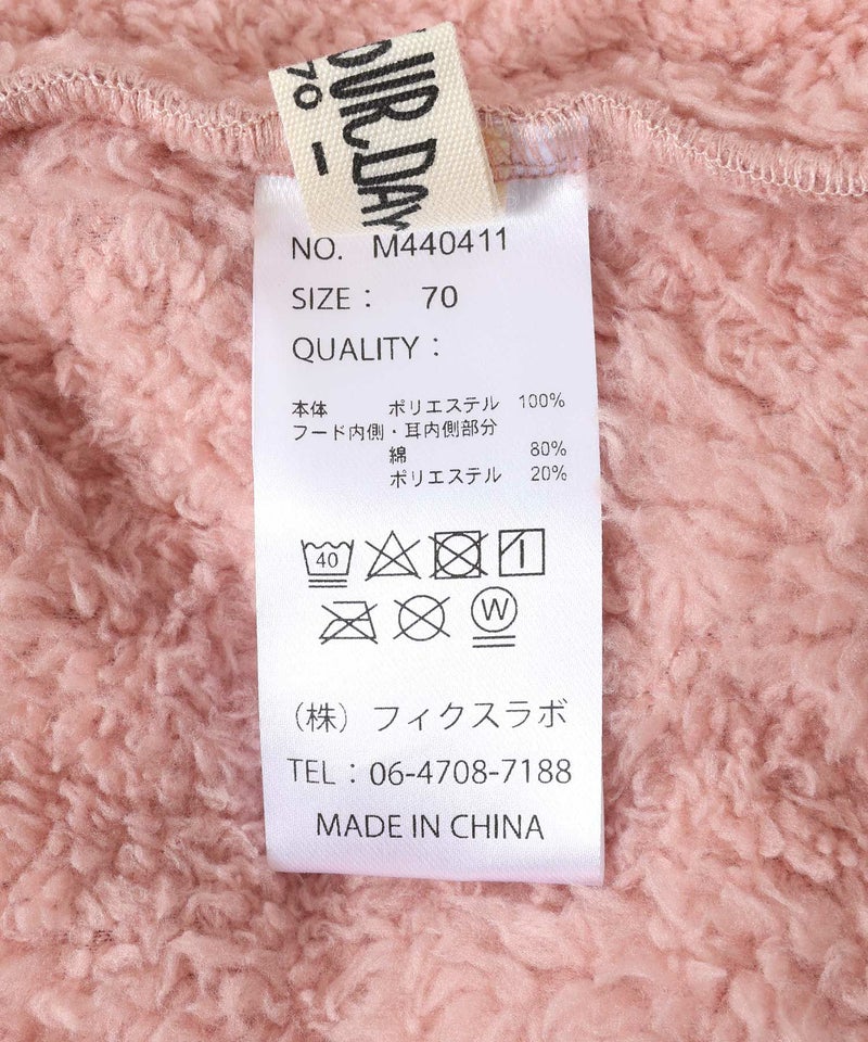 本体)ポリエステル100% フード内側・耳内側部分)綿80% ポリエステル20%