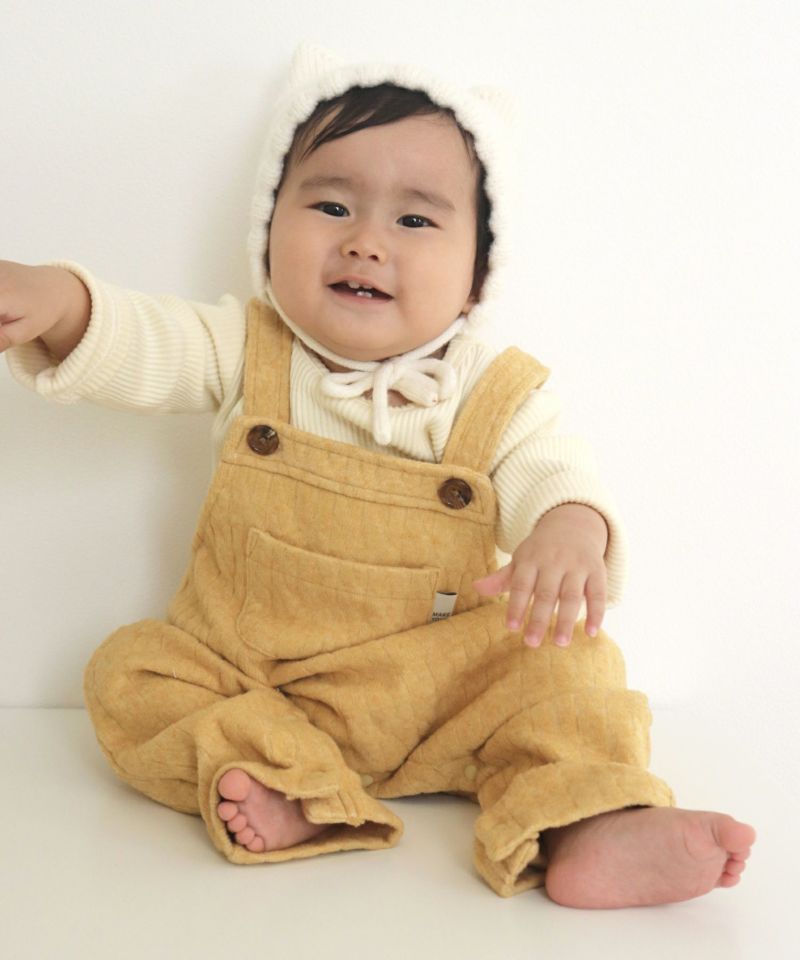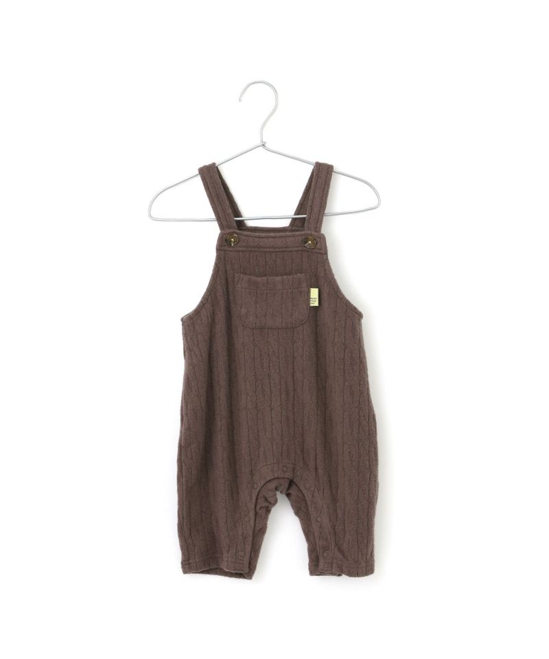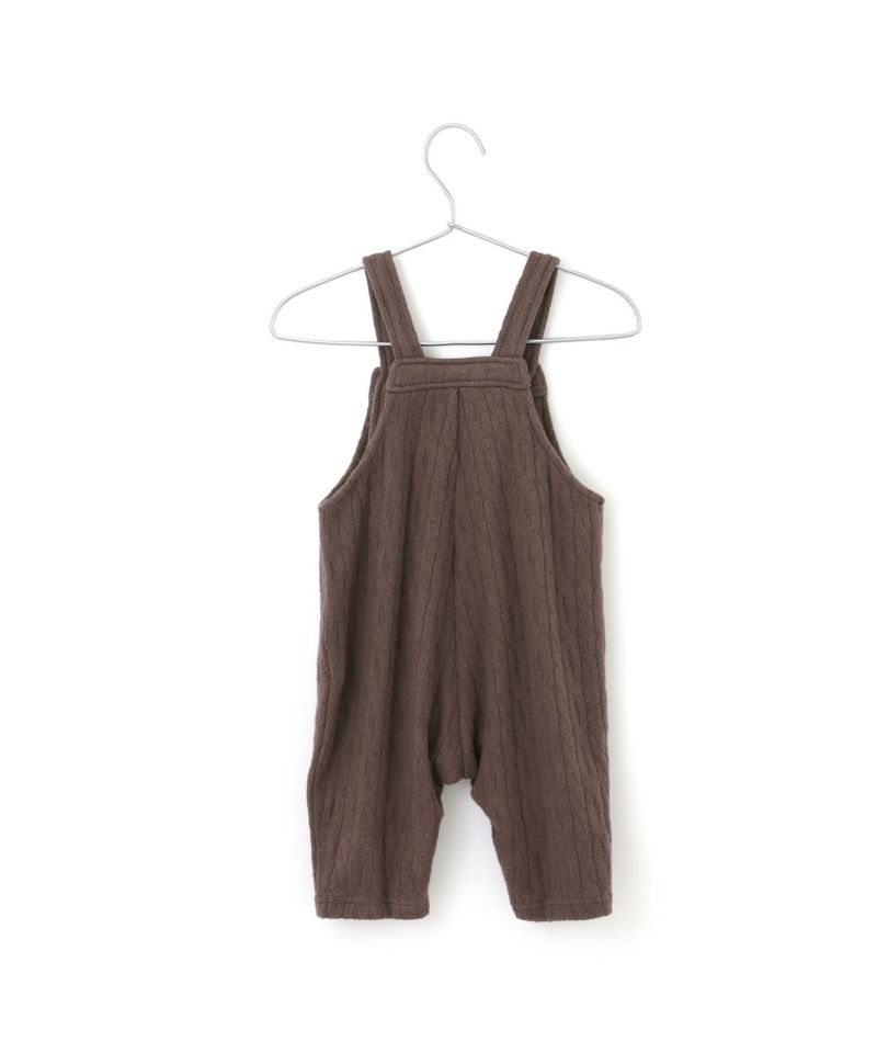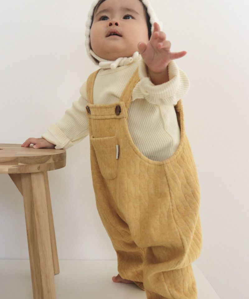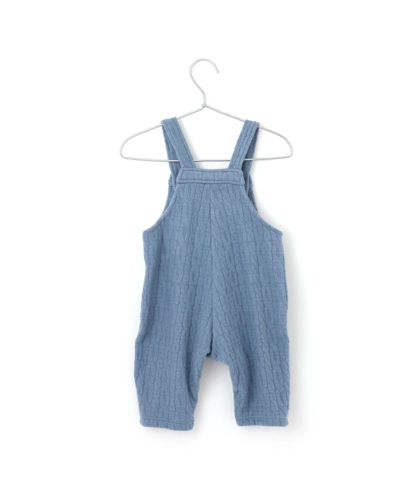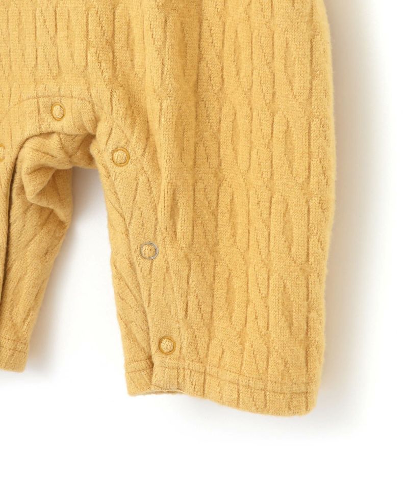 起毛感のあるケーブル柄の素材を使用したベビーオール。