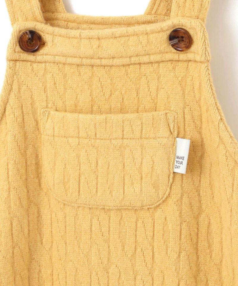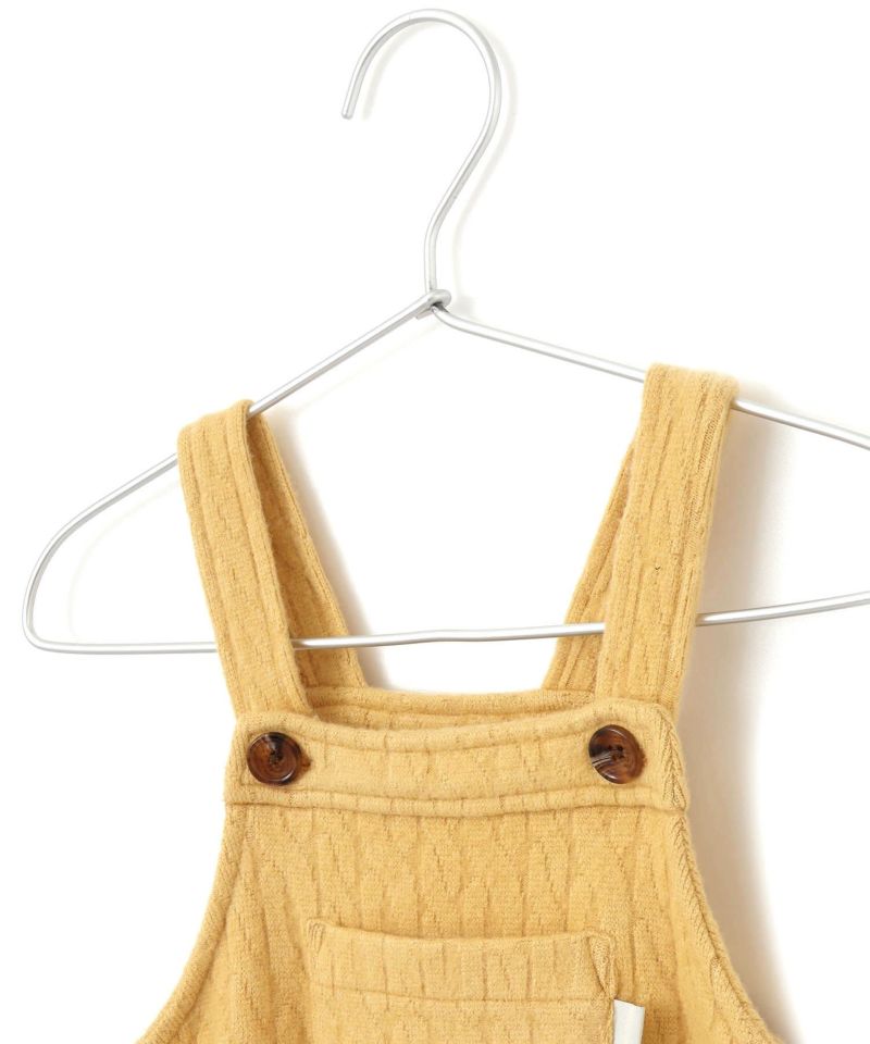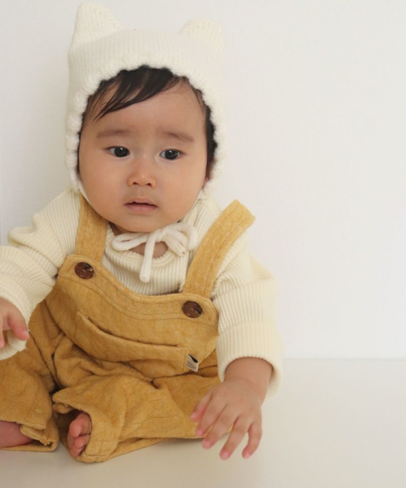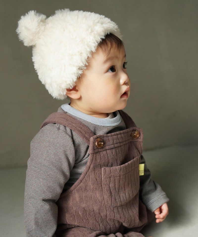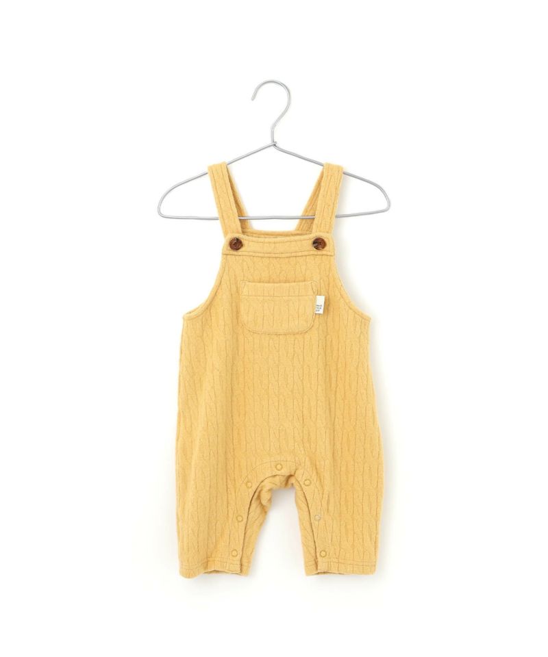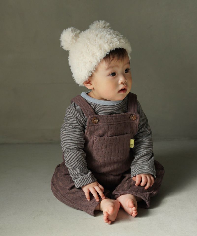 起毛感のあるケーブル柄の素材を使用したベビーオール。