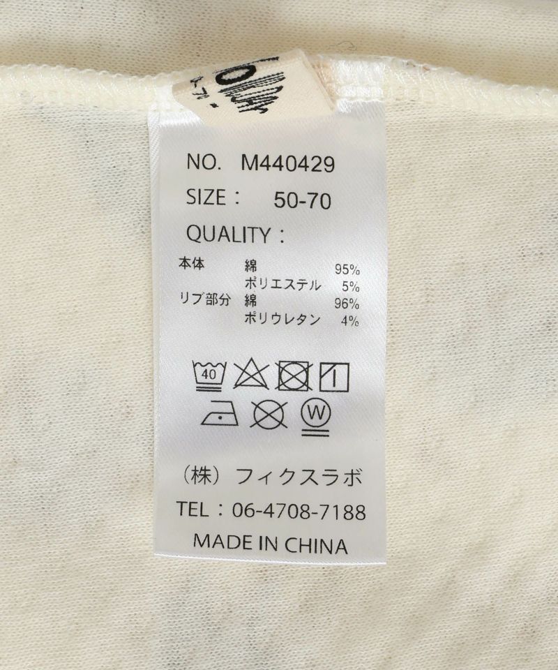 本体)綿95% ポリエステル5% リブ部分)綿96% ポリウレタン4%