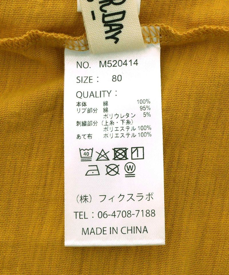 本体)綿100%リブ部分)綿95% ポリウレタン5% 刺繍部分 上糸・下糸)ポリエステル100%