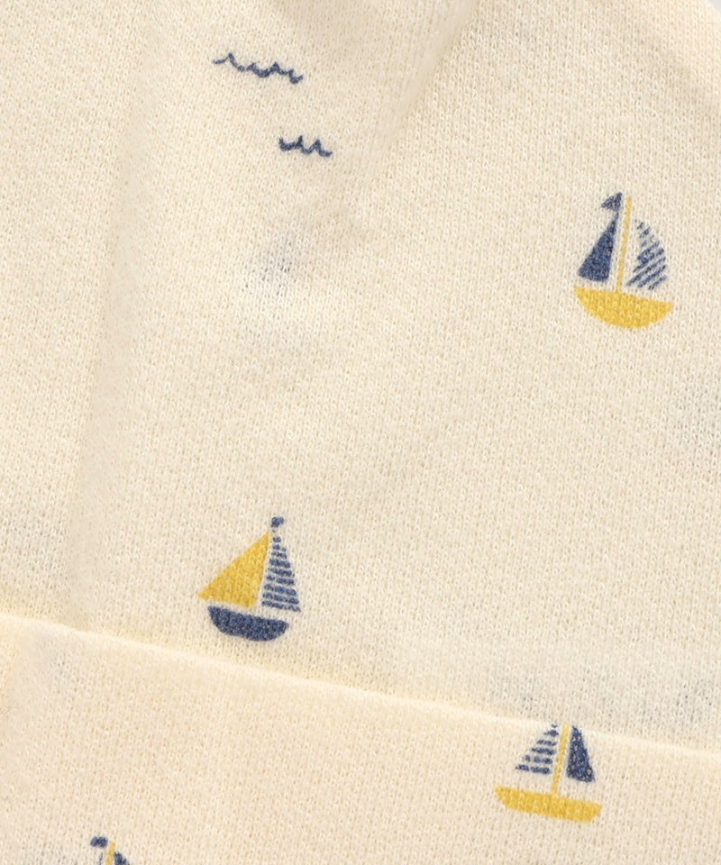 ブルーはヨット柄、オフホワイトは星柄、イエローはレモン柄です。