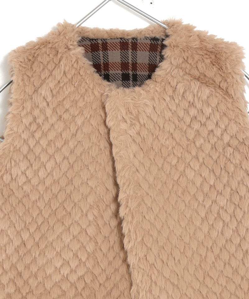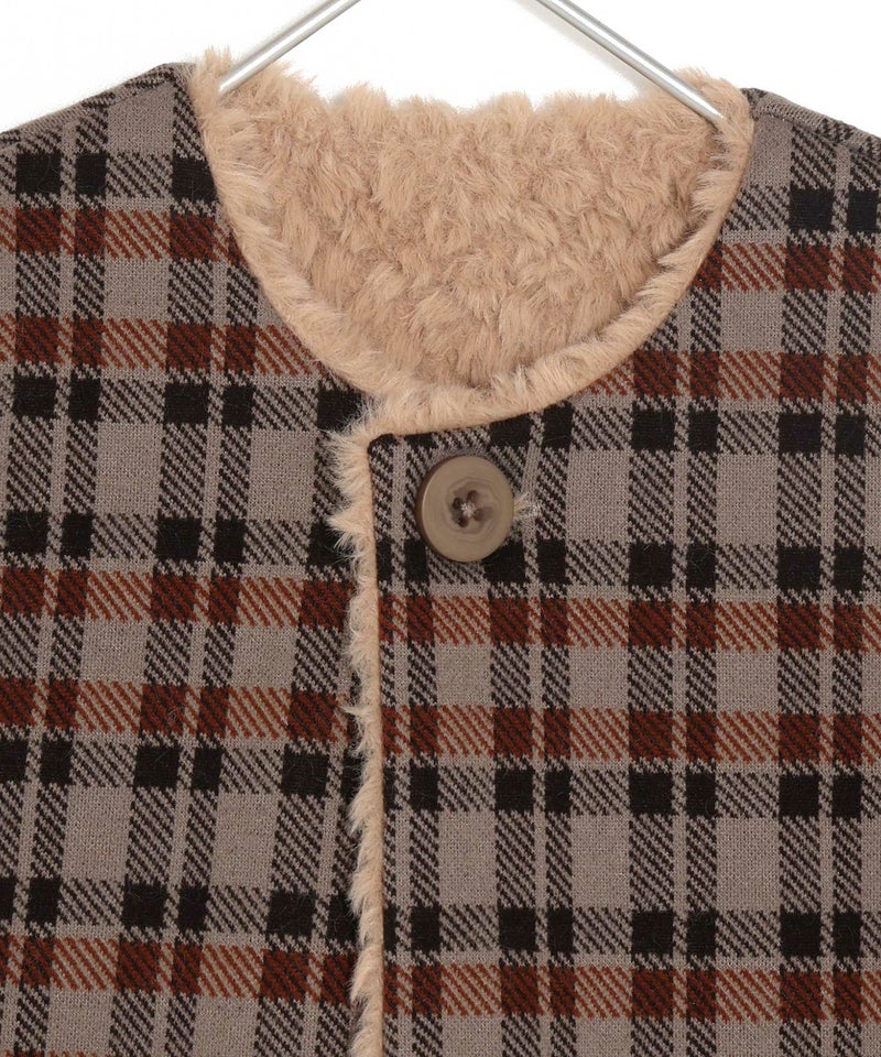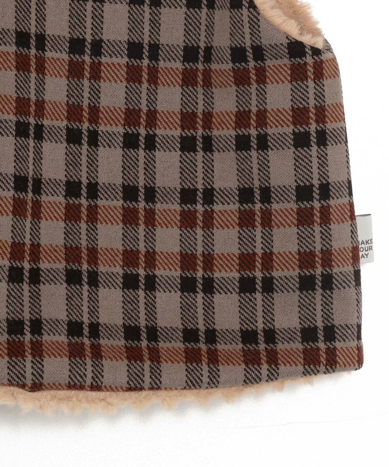 チェック柄とポコポコしたボア柄とのリバーシブルで、気分やコーデに合わせて2WAYでご使用いただけます。