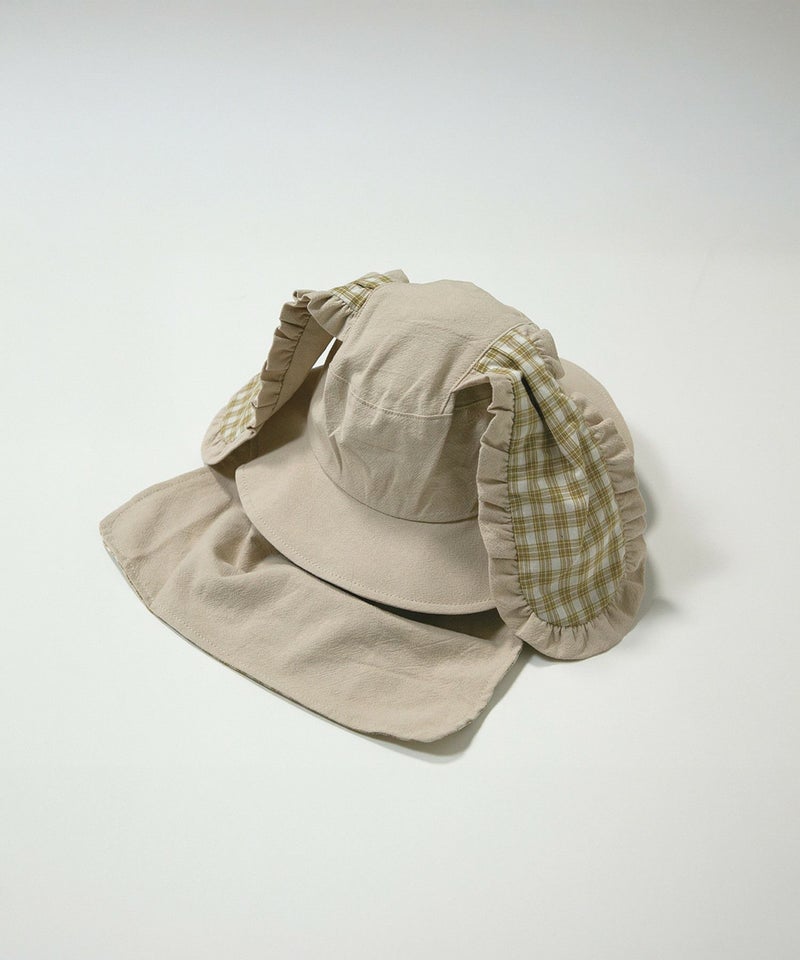 取り外しのできる日よけ部分はリバーシブルで、気分やコーデに合わせて無地とチェックをお選びいただけます。
