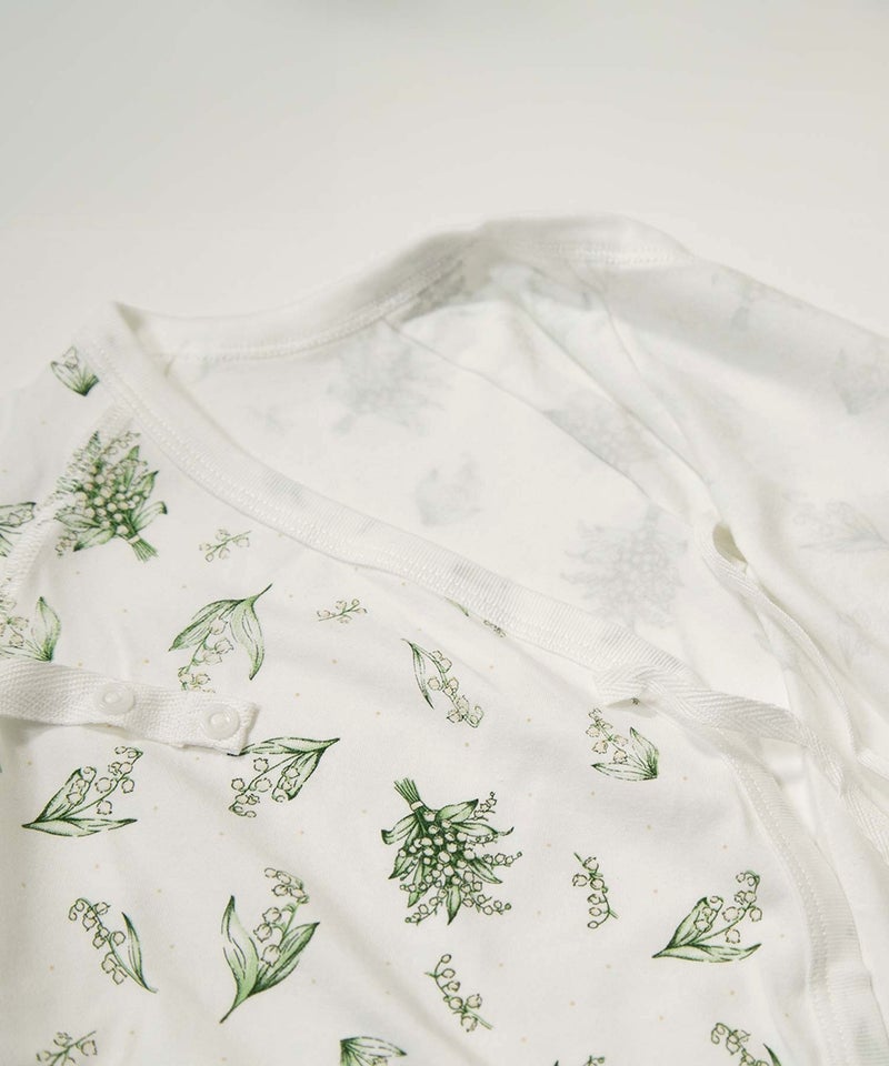 ブルーは船柄、オフホワイトはスズラン柄です。