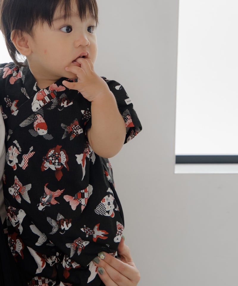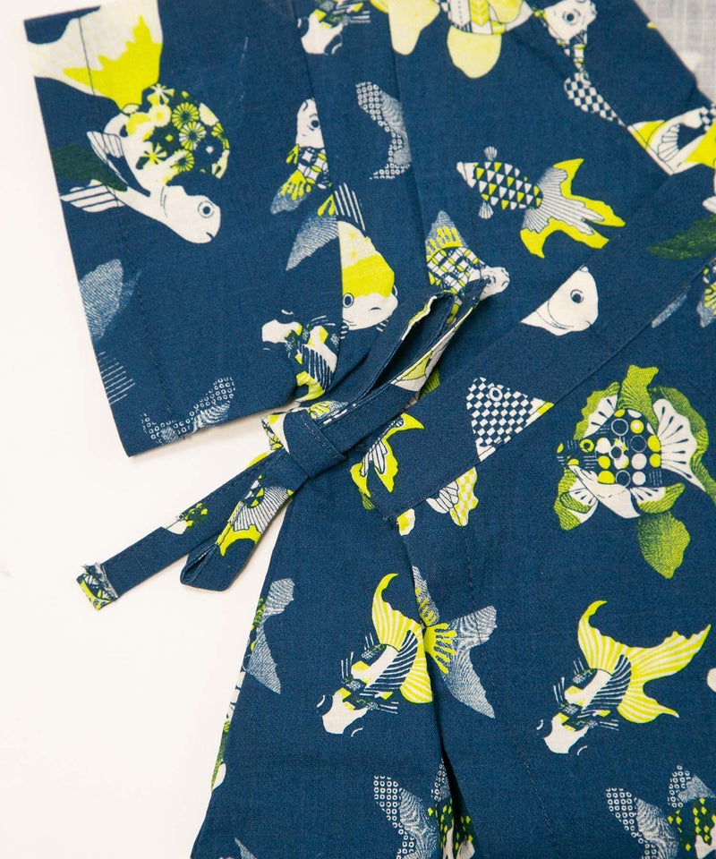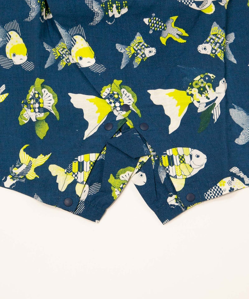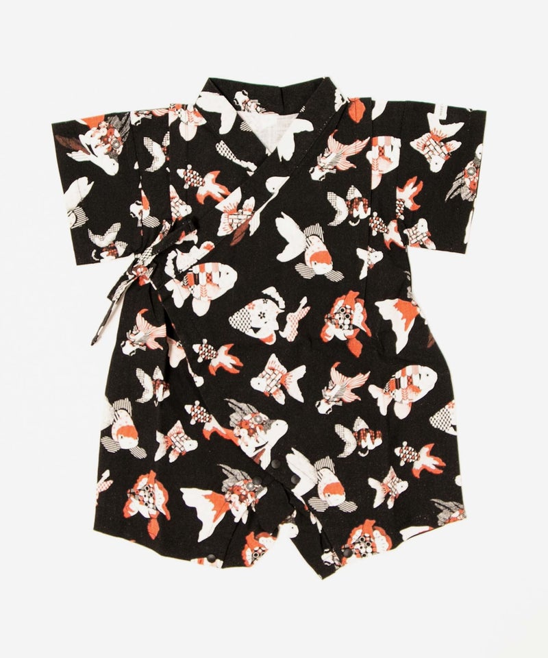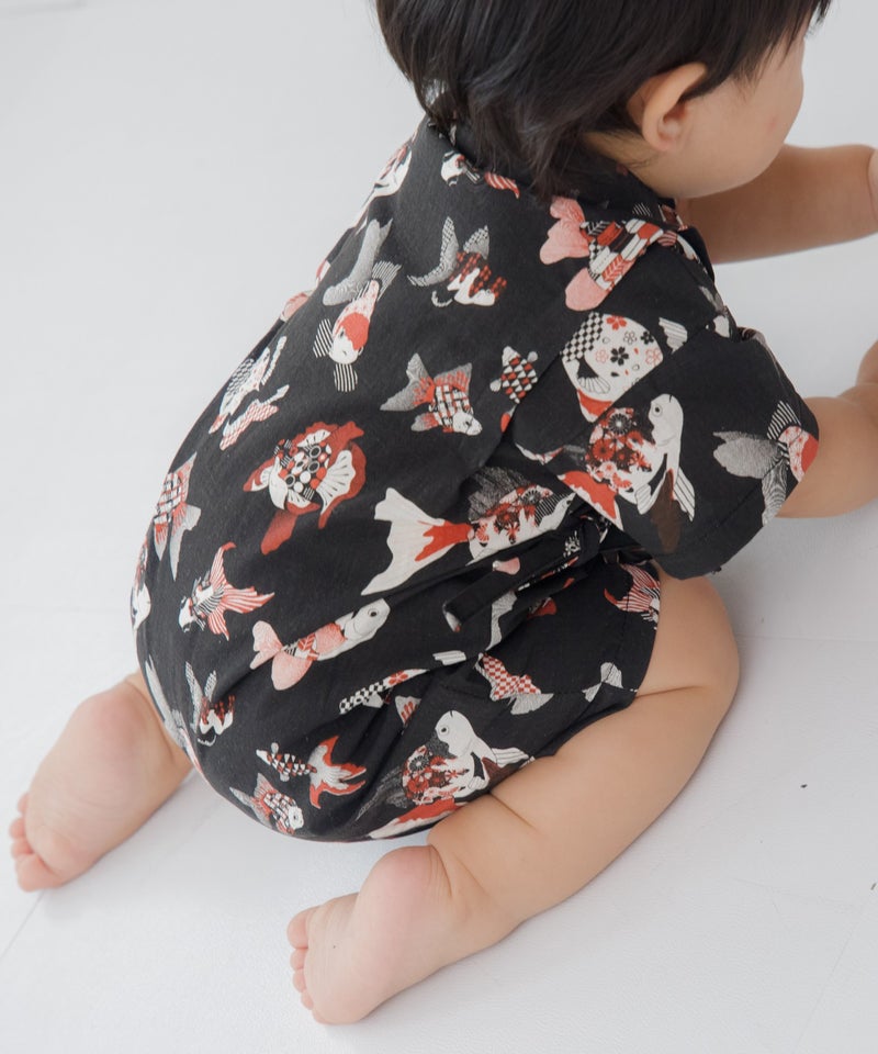 日本的なレトロモダンのかっこいい金魚柄の甚平ロンパス。