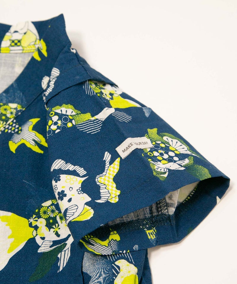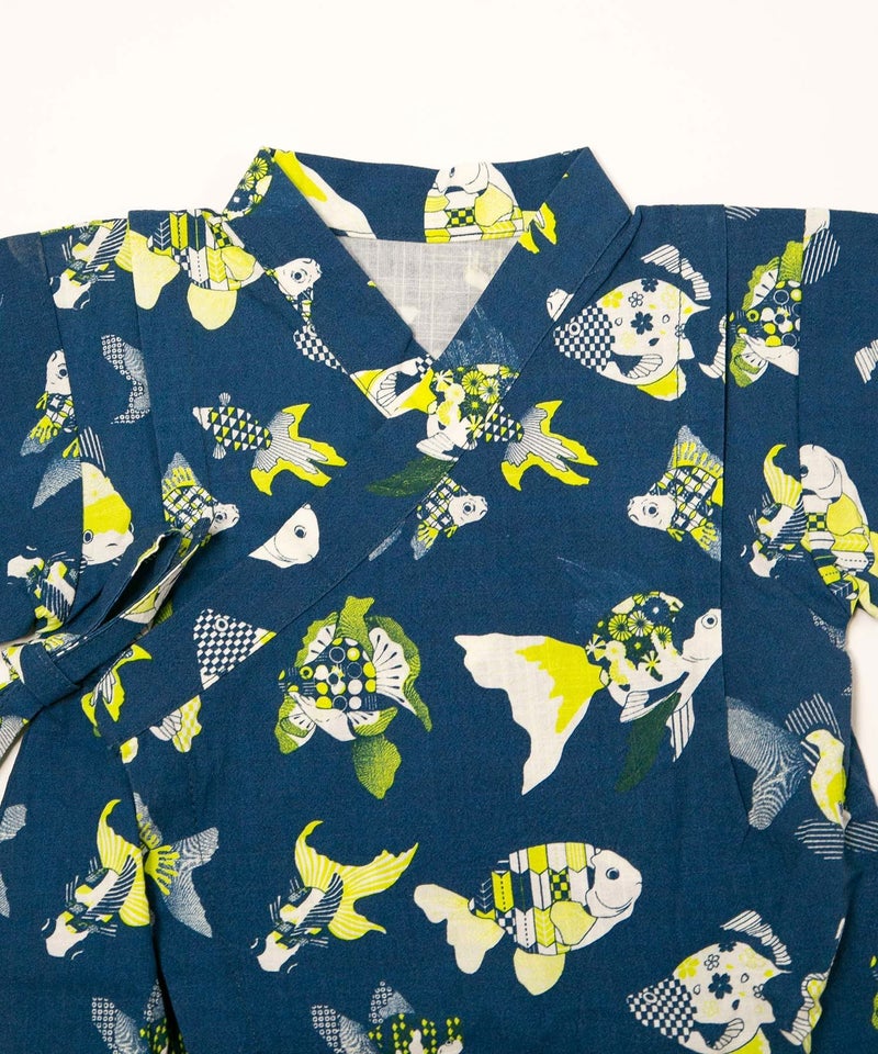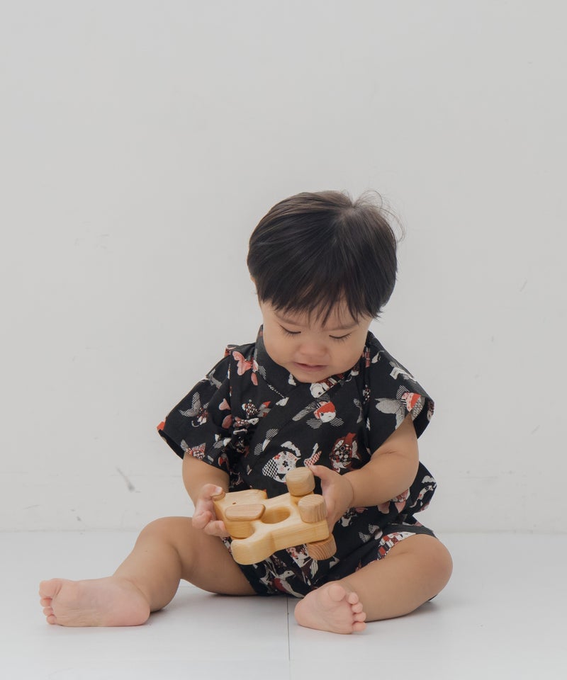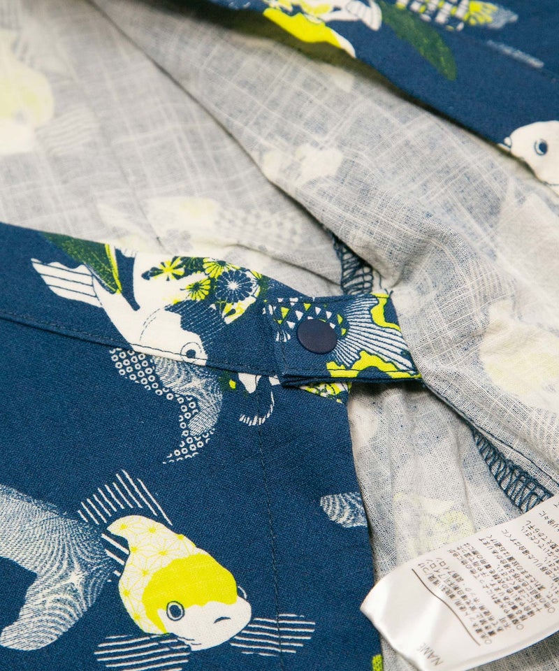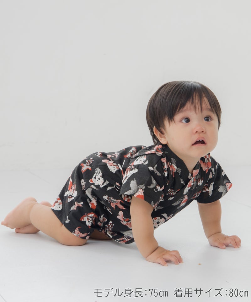 日本的なレトロモダンのかっこいい金魚柄の甚平ロンパス。