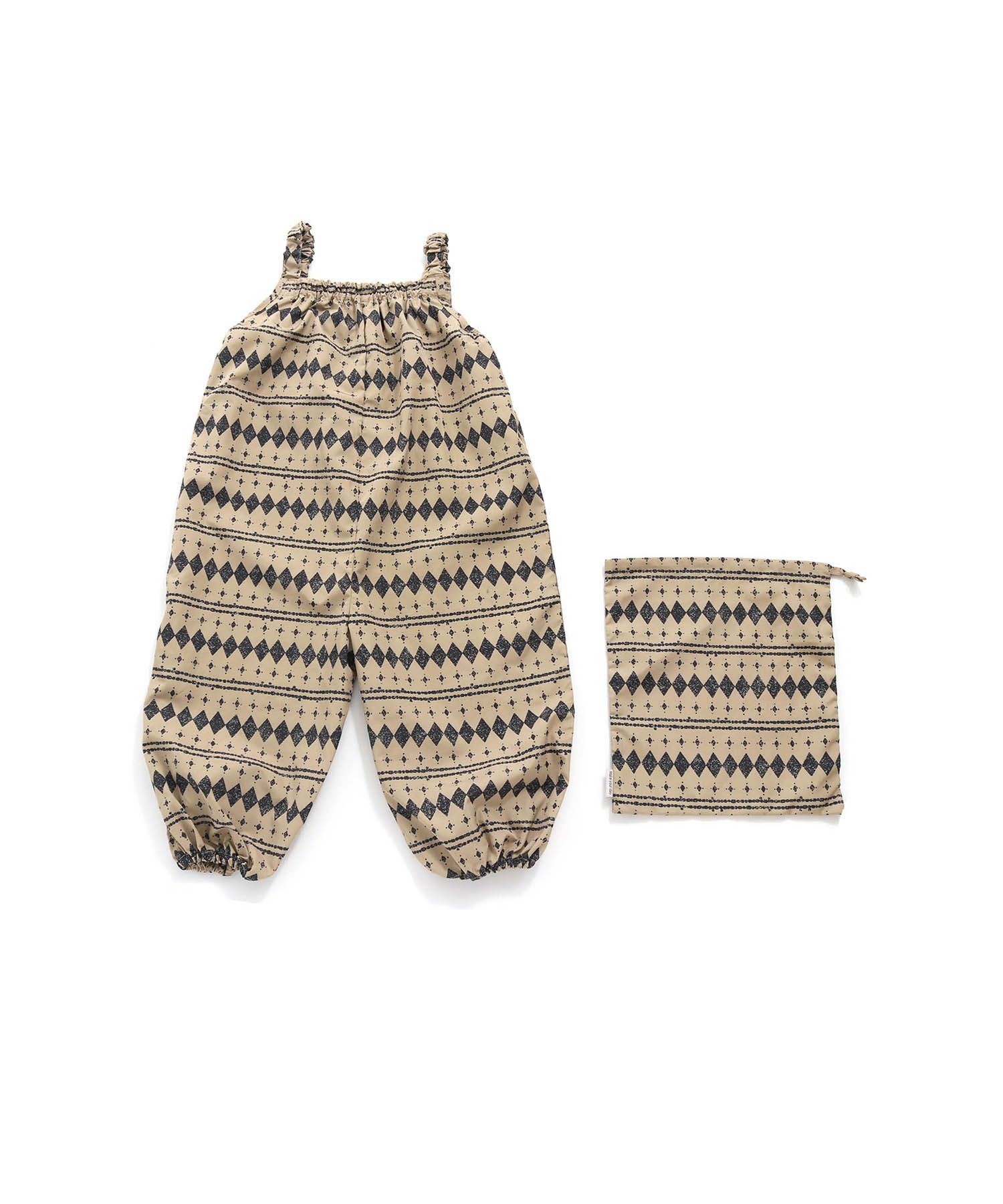 丸っこい大き目のシルエットなので、普段のお洋服の上からでも着用でき、裾にゴムが入っているので、足もともスッキリ着ていただけます◎