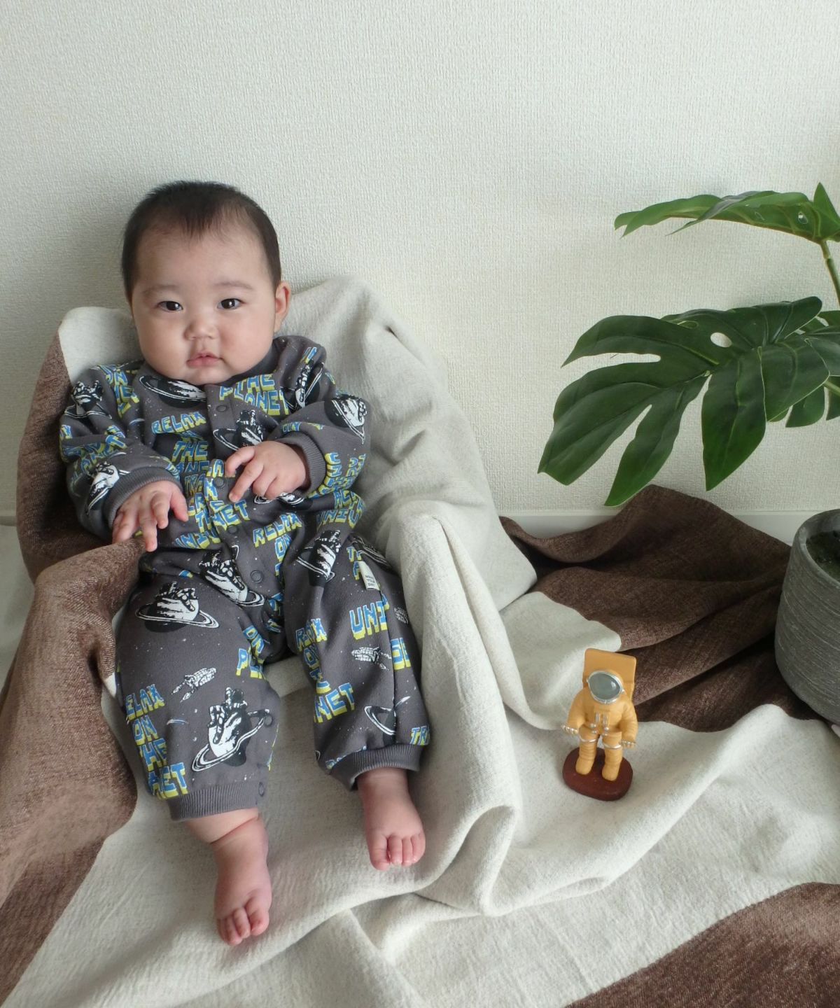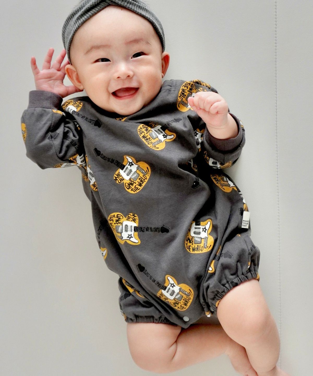 【セール】衿付き無地リブ長袖ロンパース■70.80cm