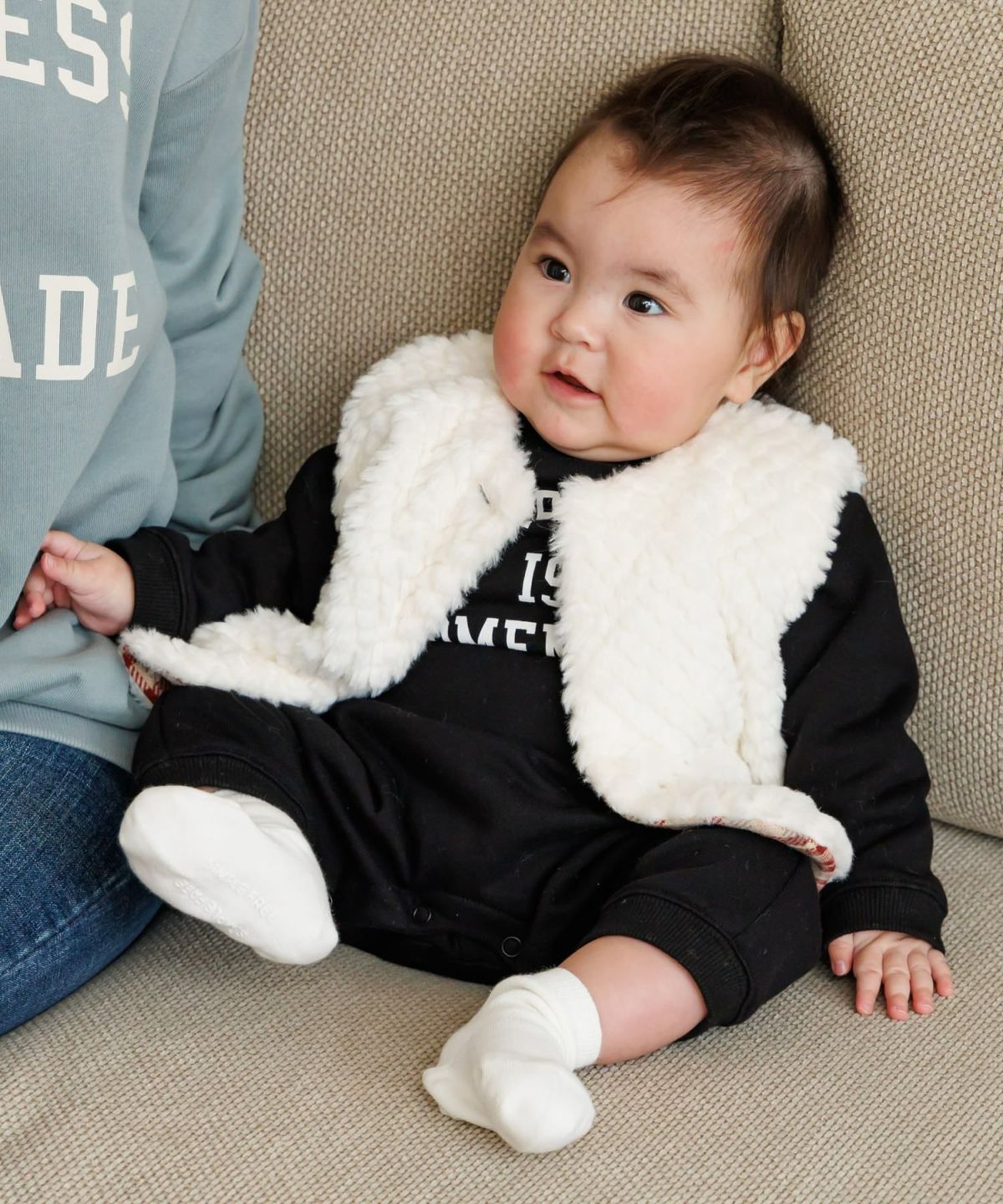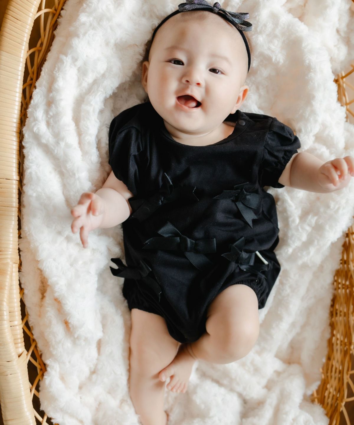 【セール】ママとおそろい リボンパフスリーブ半袖ロンパス