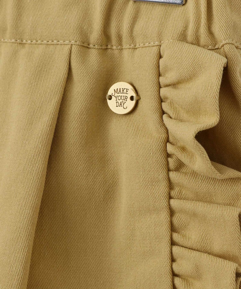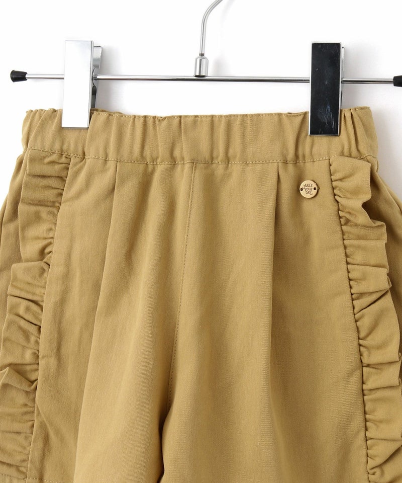 同色のフリルがさりげなくついているので甘くなりすぎず、どんなテイストのトップスにも合わせていただけます◎