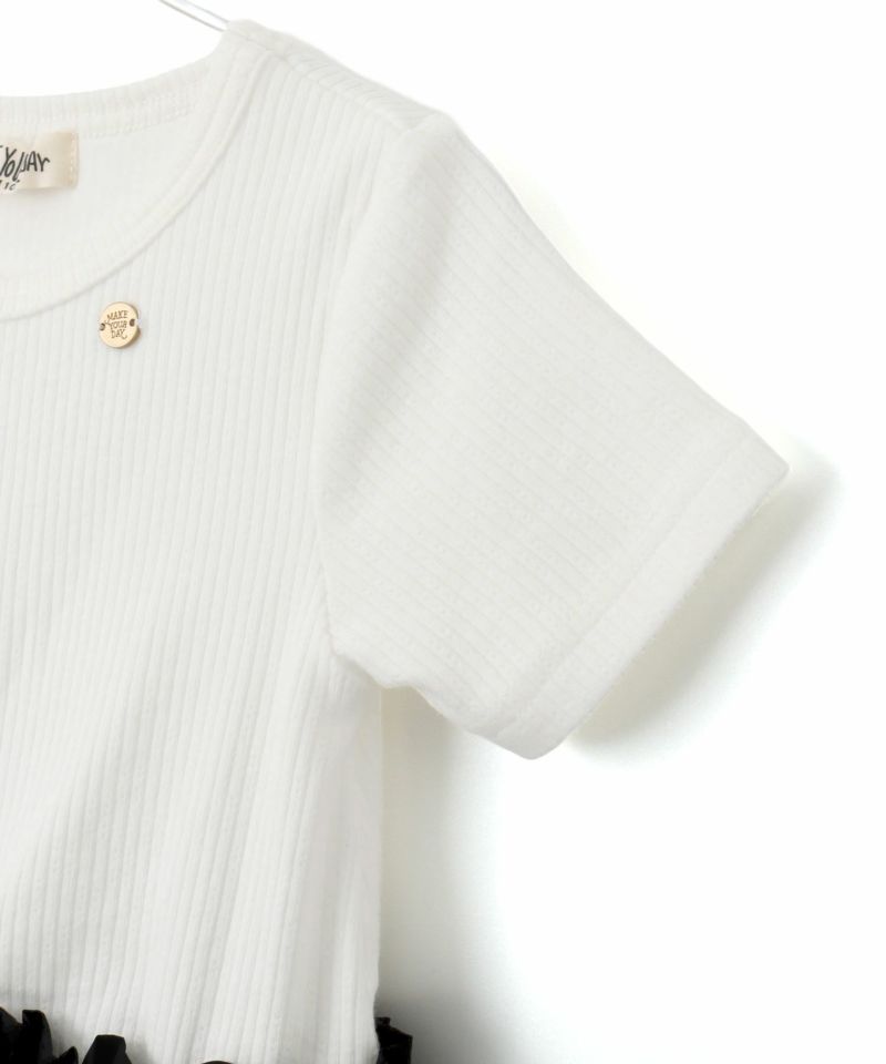 リブTシャツとナイロンのスカートがドッキングされた、大人っぽいシルエットのワンピース。