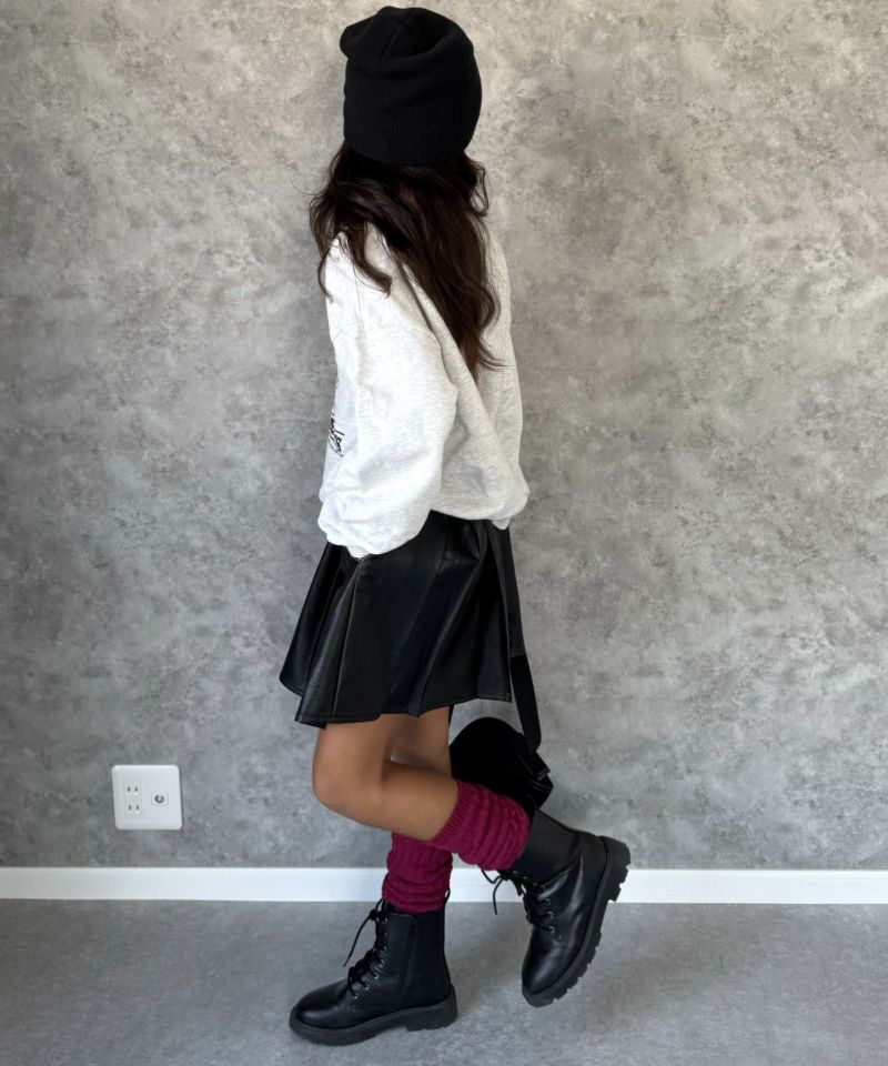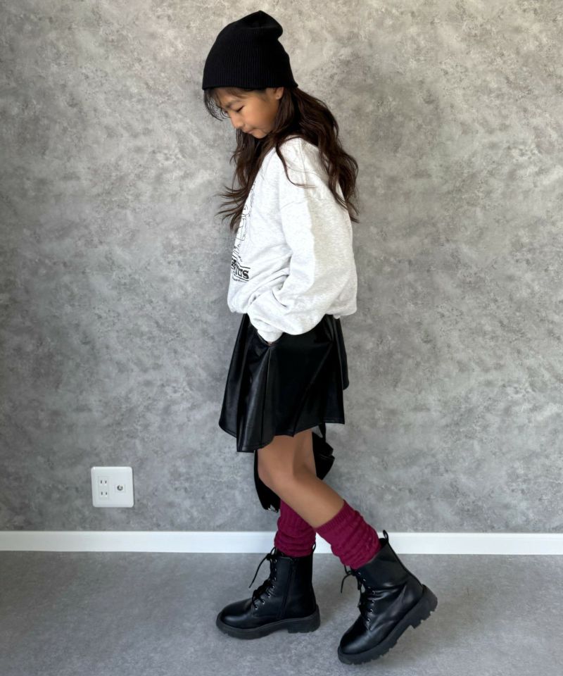 スウェットを合わせて、K-POPアイドルのようなキュートさのあるコーディネートが楽しめます。