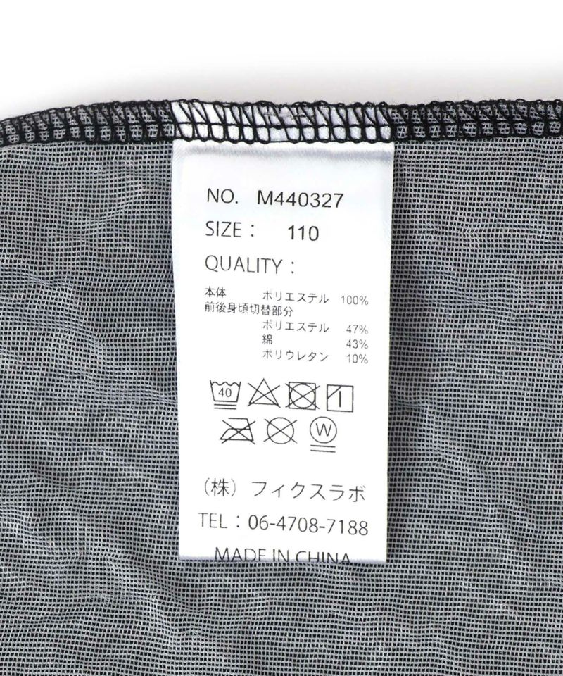 本体)ポリエステル100% 前後身頃切替部分)ポリエステル47% 綿43% ポリウレタン10%