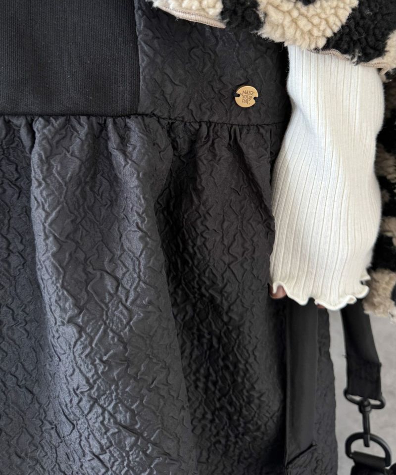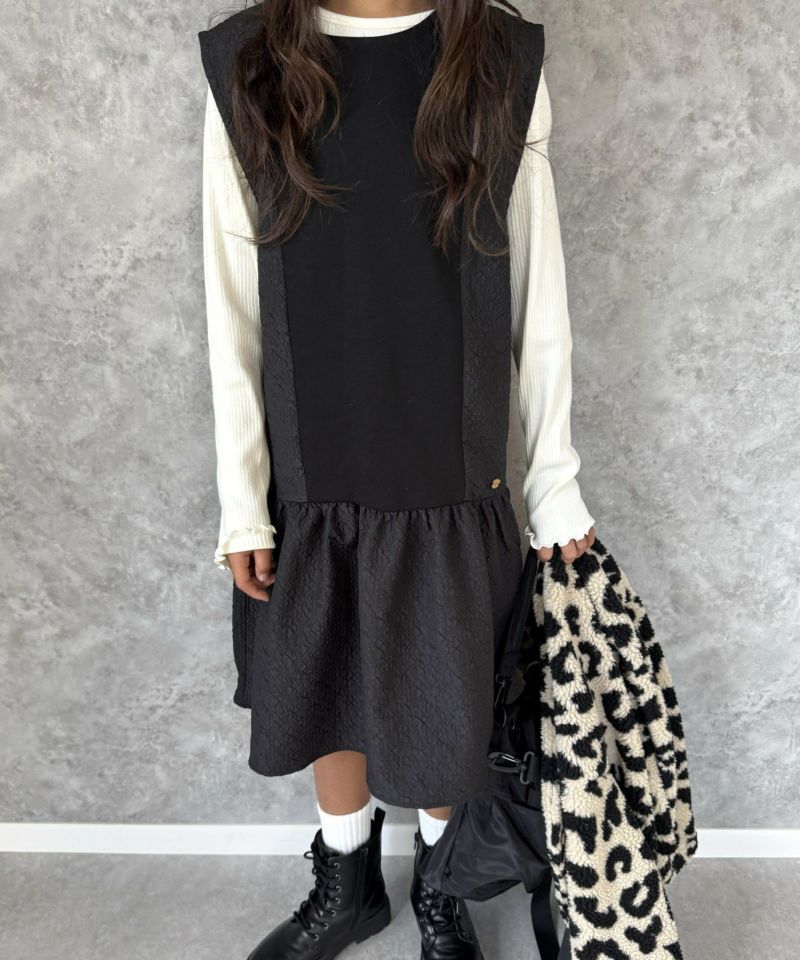 トレンドの凹凸感のあるポコポコ素材を使用しており、大人っぽく着ていただけるジャンパースカートです。