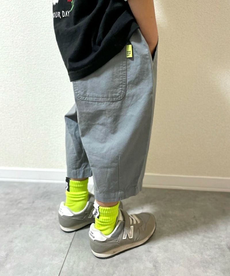 膝がしっかり隠れる6分丈のゆったりしたパンツ。