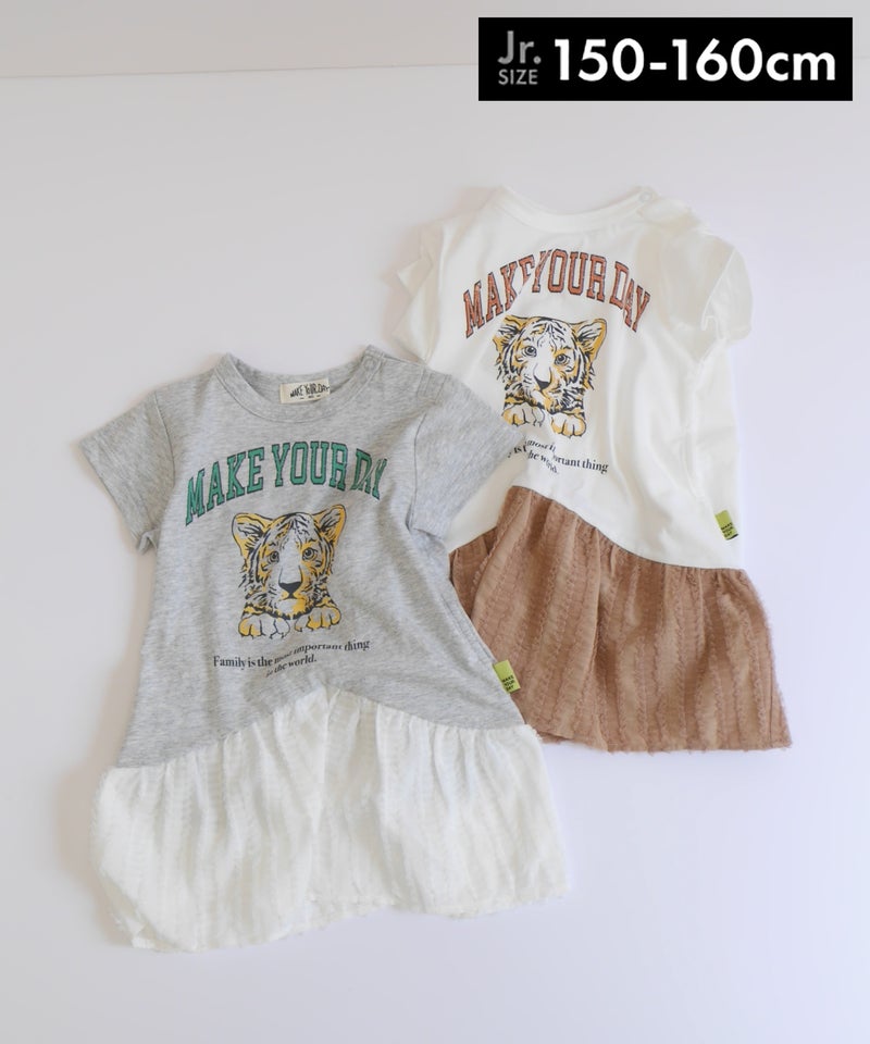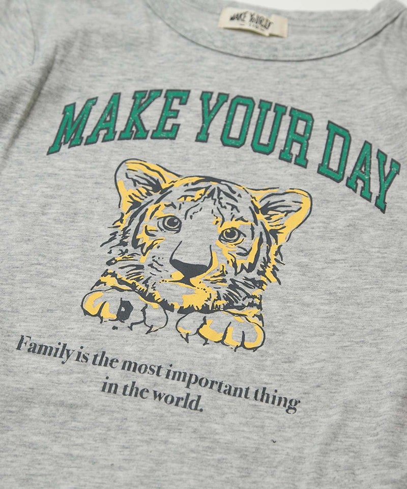 ベビーからジュニアサイズには子トラのイラスト、パパサイズには親トラのイラストをあしらったファミリーアイテムです。