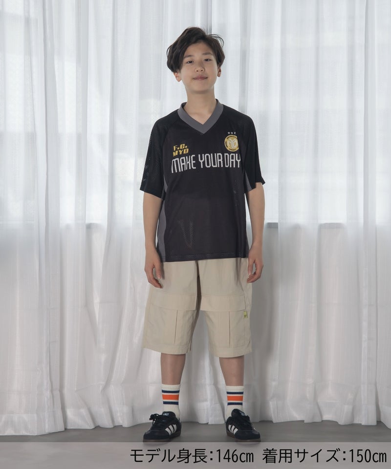 しっかりと膝が隠れる6分丈の設定で、公園遊びにもピッタリです!