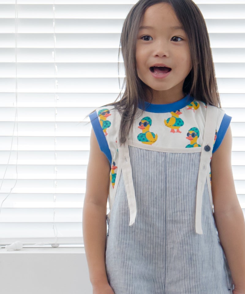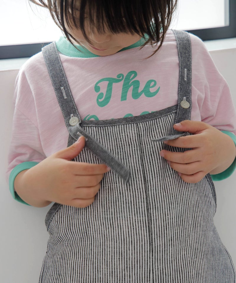 リネン素材を使用していて、男の子も女の子も着用いただけるデザインです。