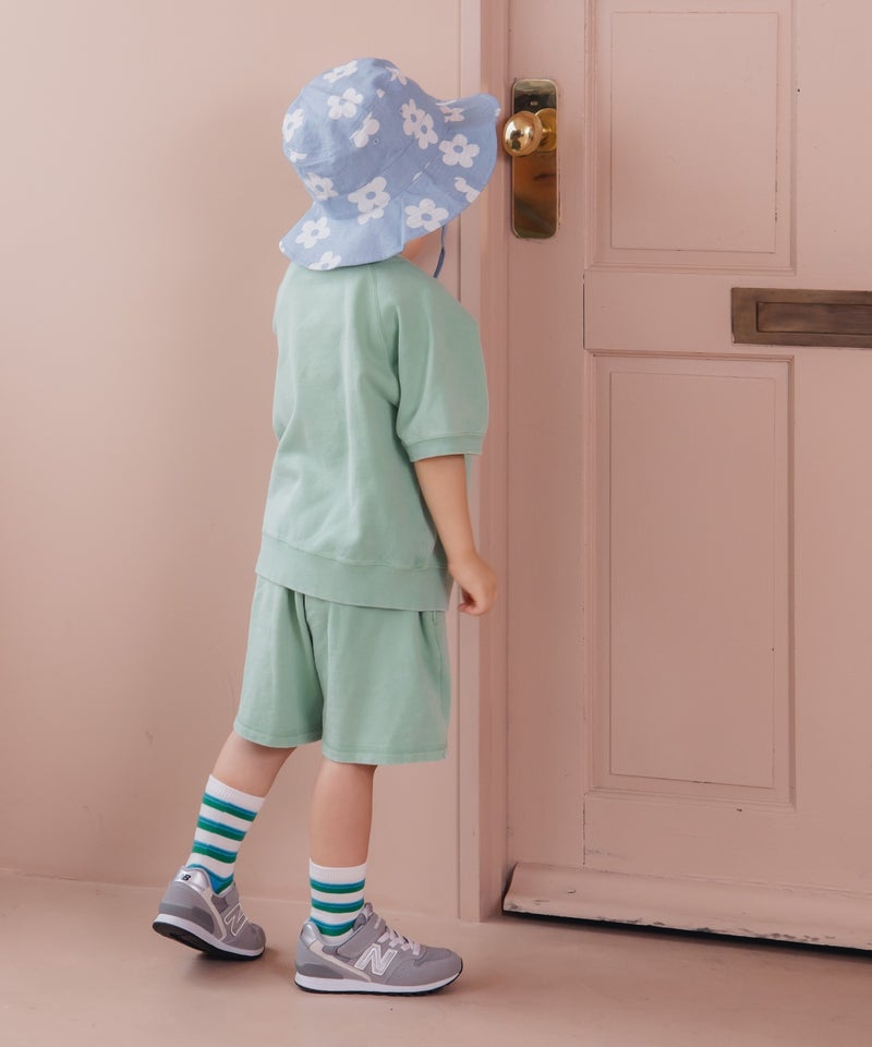セットアップできるビンテージウォッシュ5分丈パンツ■80~140cm