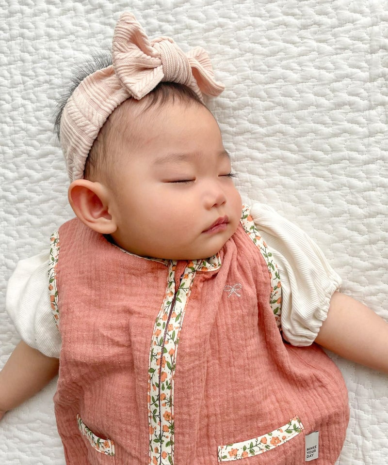 おうちの中で冷房をかけている時など、冷えすぎないようにやさしく包むスリーパーです。