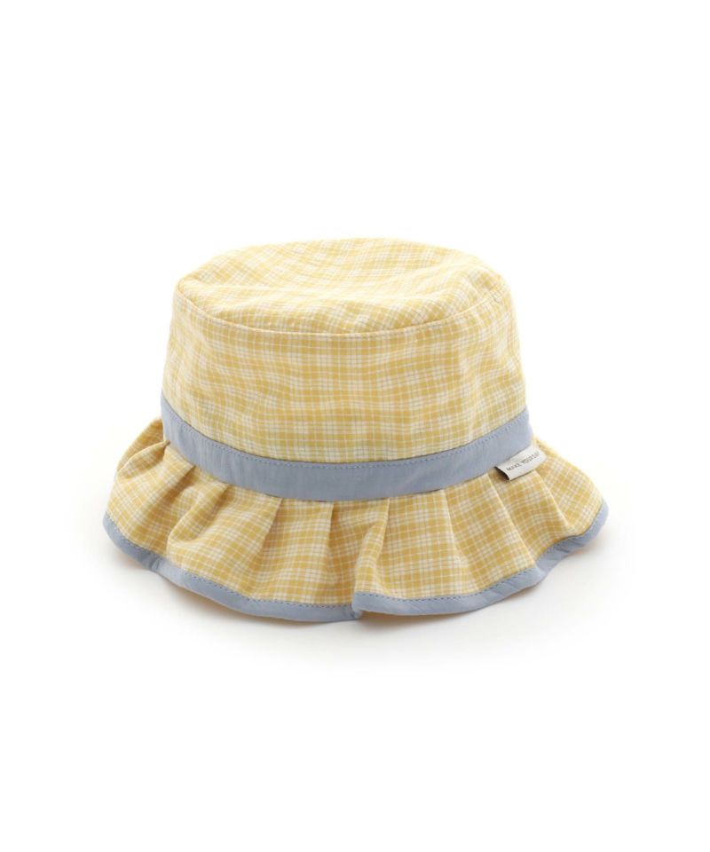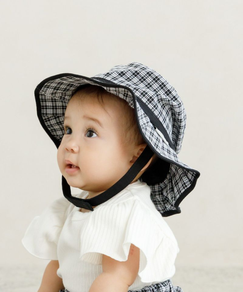 つば部分がプリーツになっているデコラティブなベビー用帽子。