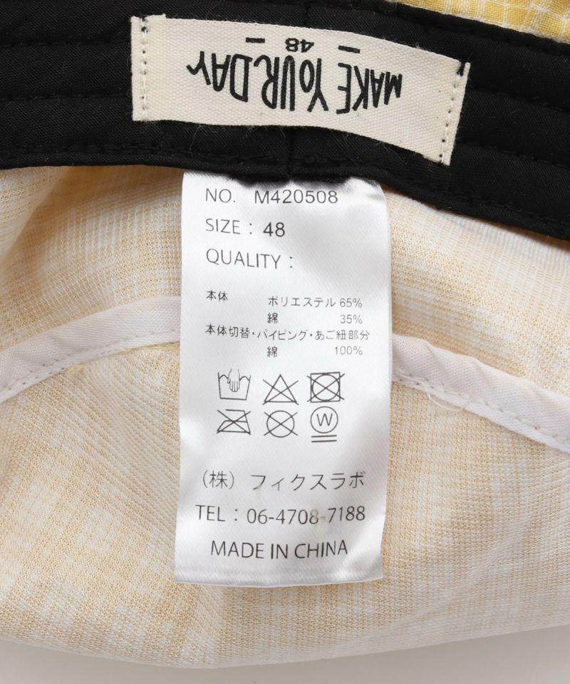 本体)綿70% ポリエステル30% 切替・縁パイピング・あご紐)綿100%